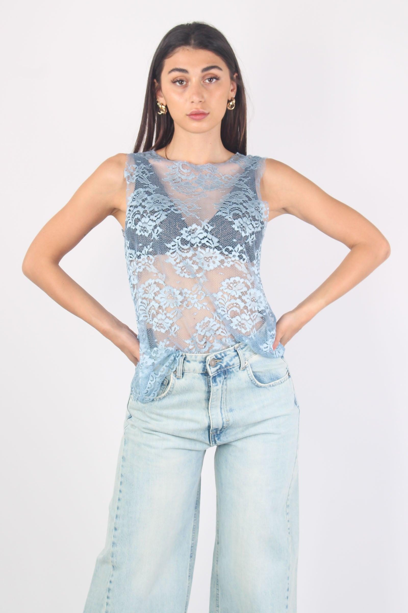 too white Canotta Pizzo Scavo Dietro Azzurro