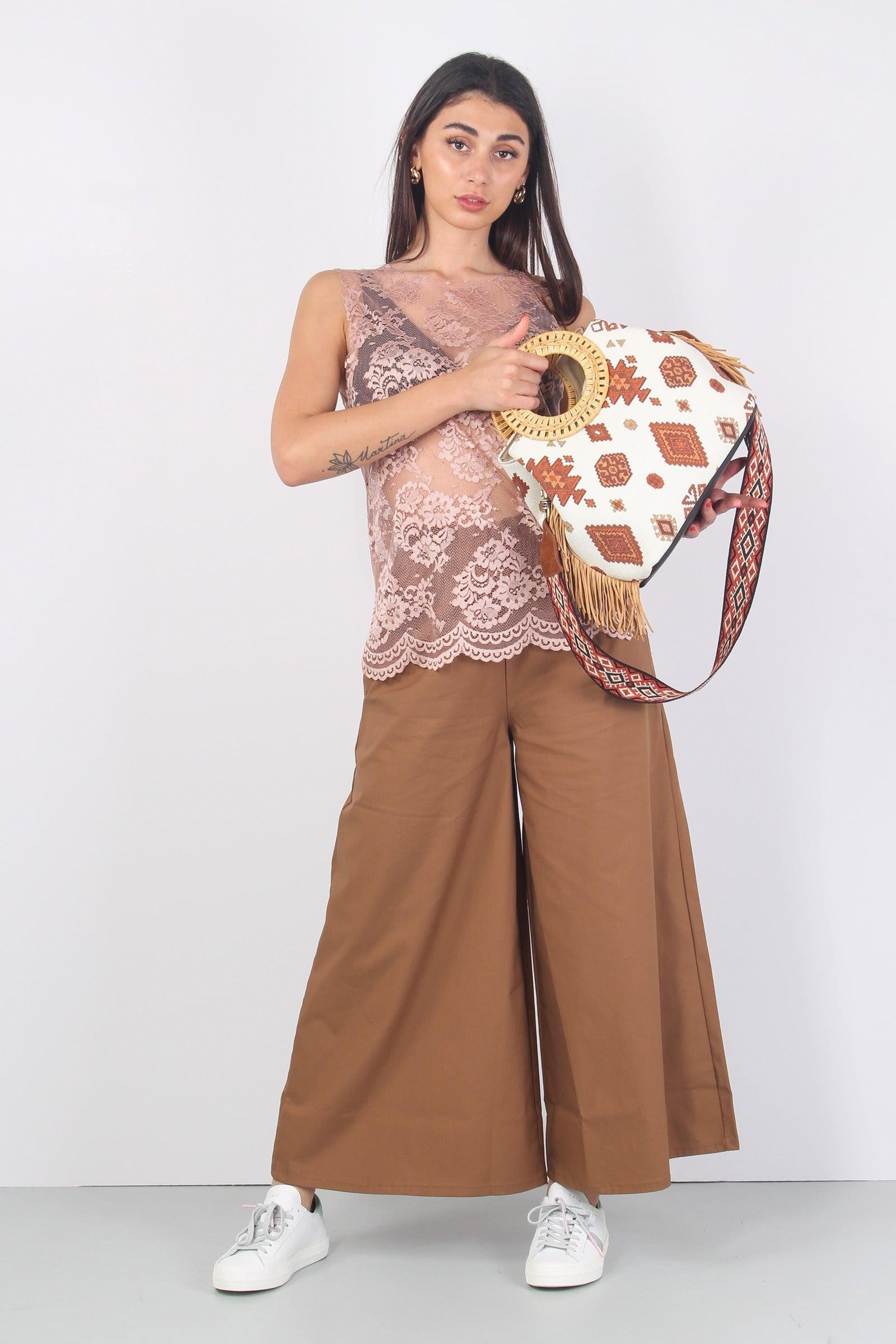 La canotta in pizzo del marchio Too White è una scelta raffinata e delicata per la collezione Primavera/Estate 2024. Questo capo distintivo cattura l'essenza femminile con il suo elegante colore cipria che si sposa armoniosamente con un'ampia varietà di outfit.