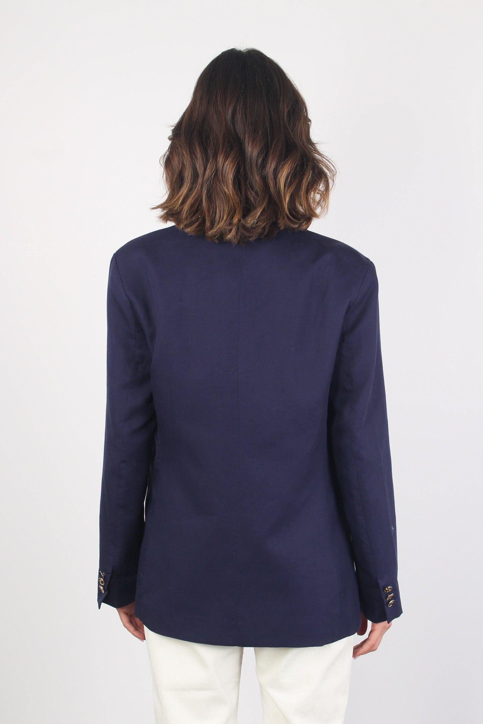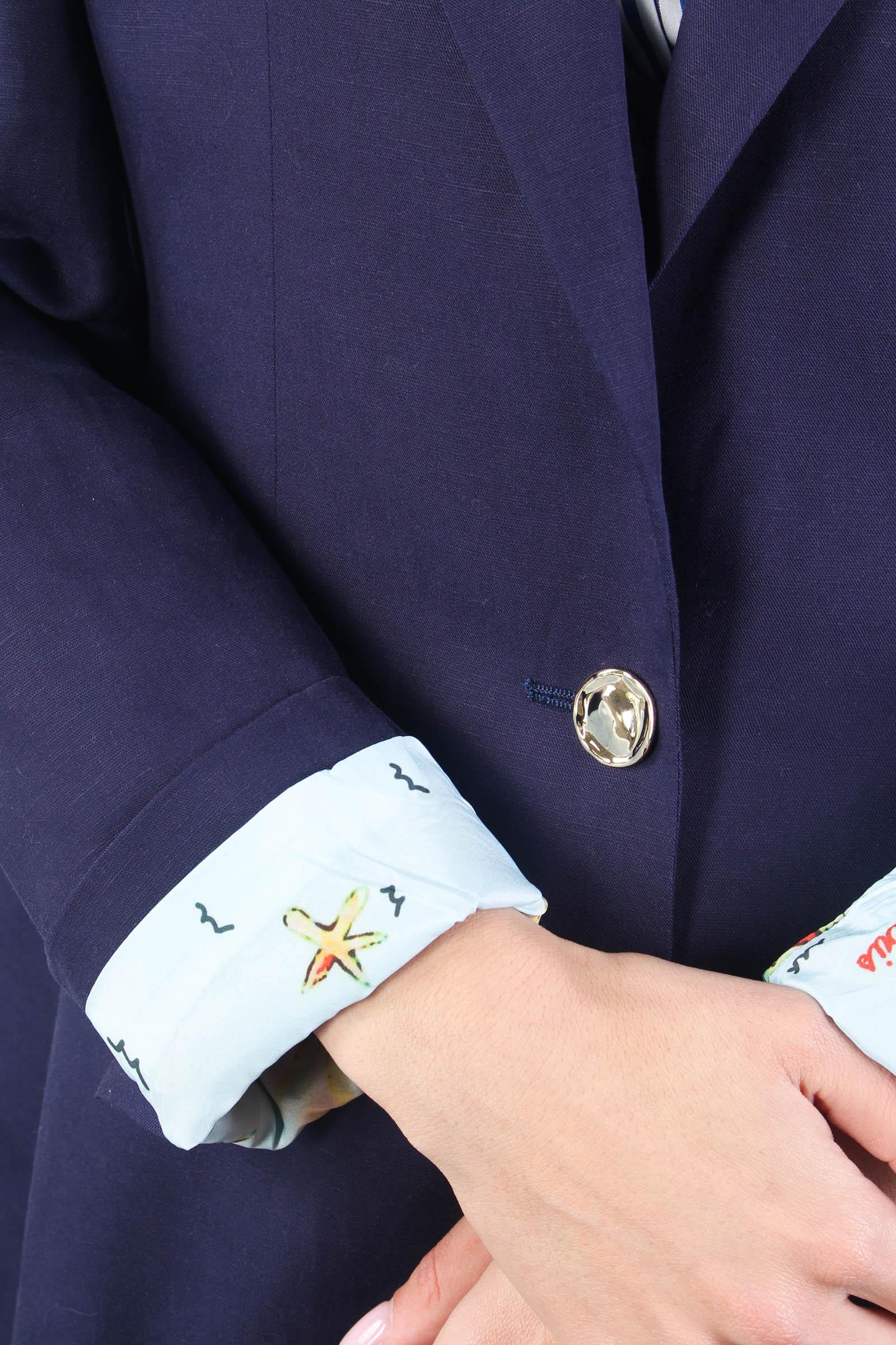 - Design: La giacca si presenta con uno stile monopetto classico, arricchita da un'intensa nuance di blu che celebra la vivacità e l'eleganza.