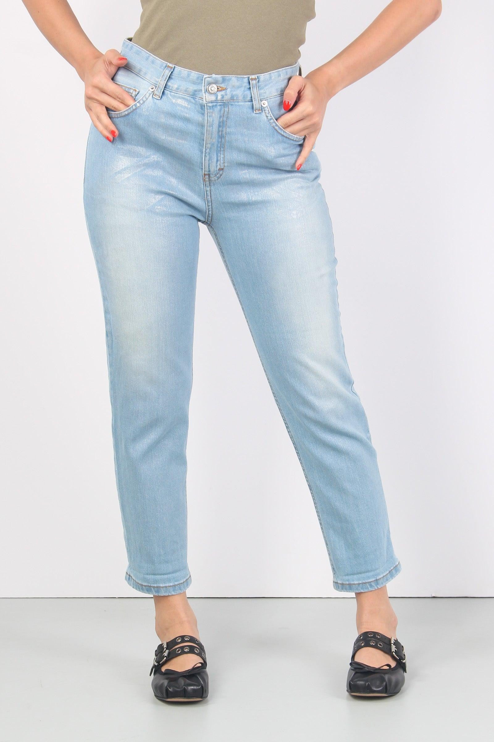 Scoprite la raffinatezza e il tocco contemporaneo dei Too White Jeans per la donna moderna. Questi jeans PE24 si distinguono per la loro spalmatura argento, che riflette eleganza e originalità, illuminando ogni outfit. Realizzati in denim chiaro, sono l'ideale per chi ama dettagli scintillanti e un look urbano sofisticato.