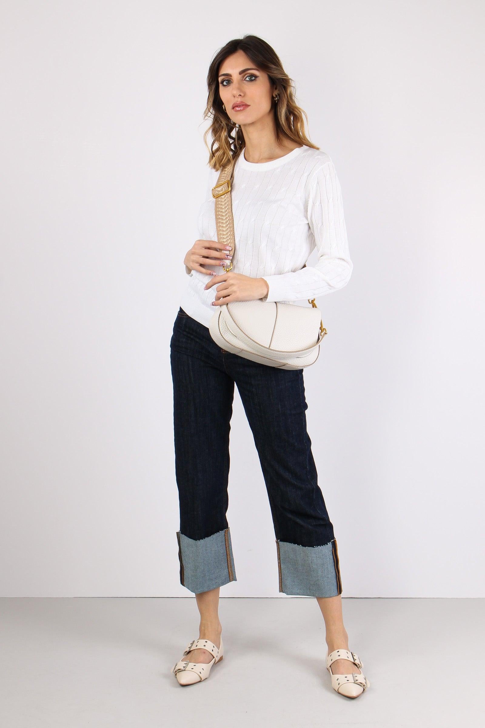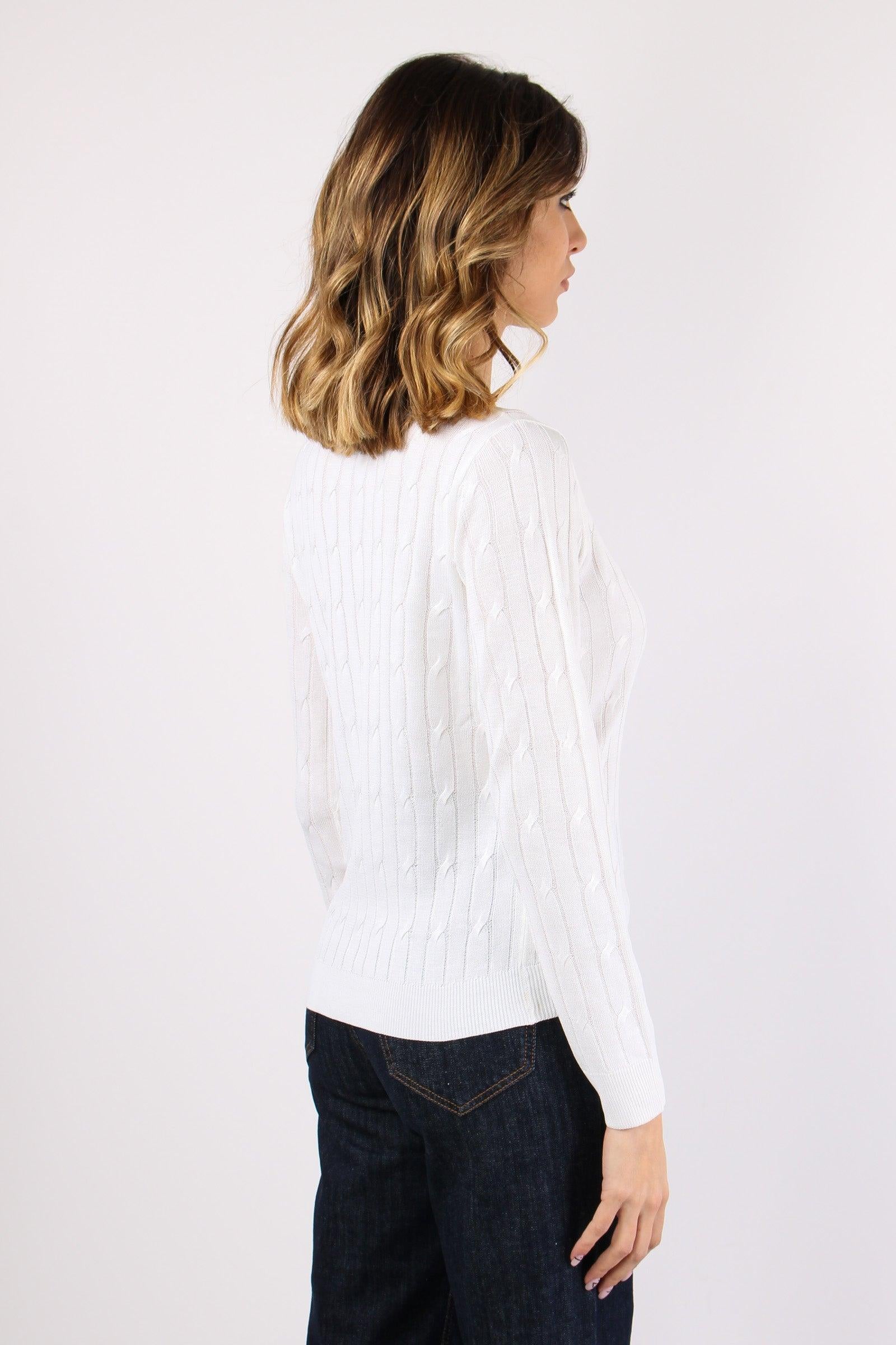too white Maglia Girocollo Treccia Bianco