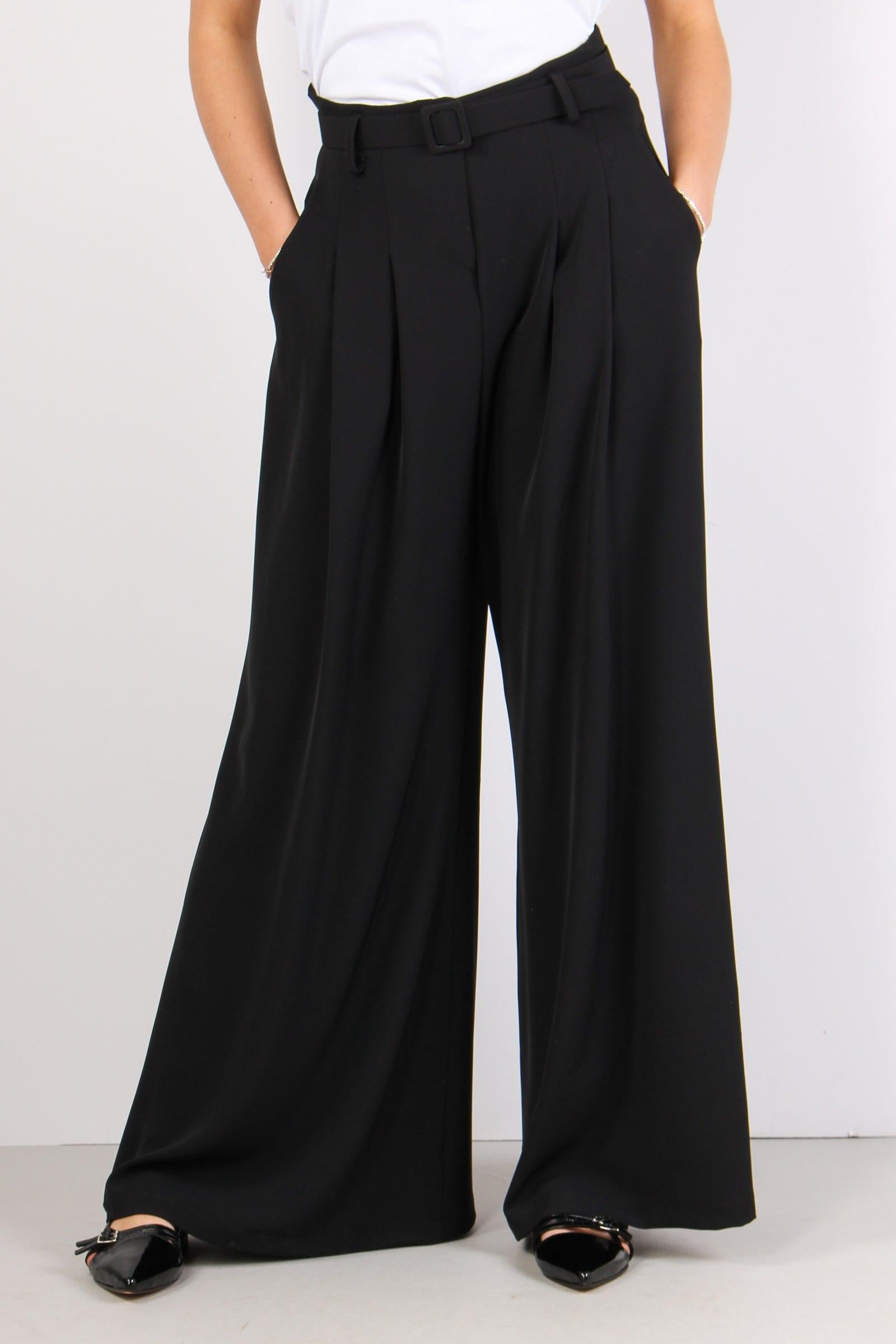 too white Pantalone Pences Fluido Cintur Nero