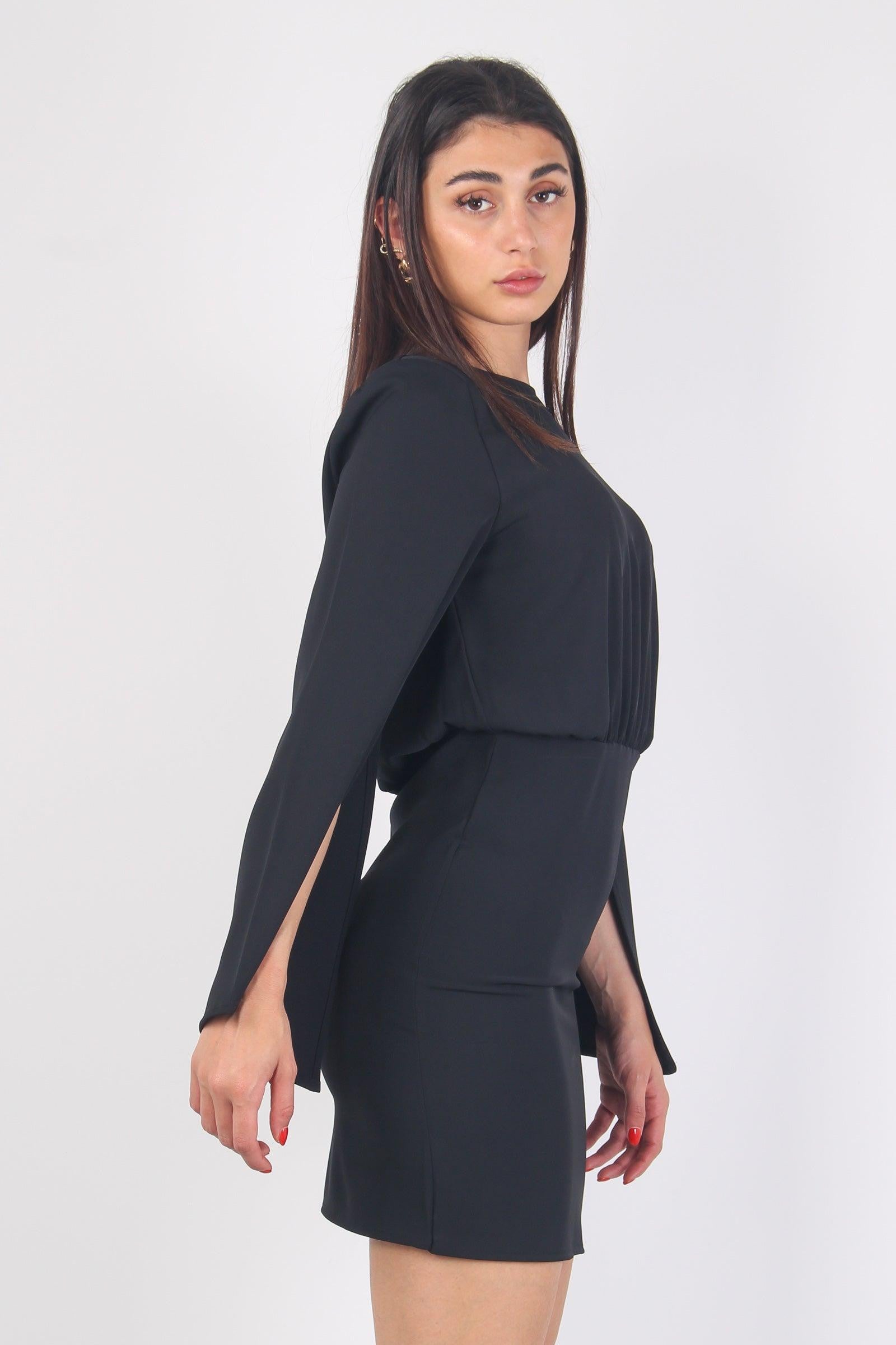 Il tessuto di alta qualità garantisce comfort e durata, mentre la tonalità nera offre versatilità in ogni occasione. Il Tubino Manica Ampia è una vera e propria tela bianca per accessori audaci o un aspetto sobrio e sofisticato.