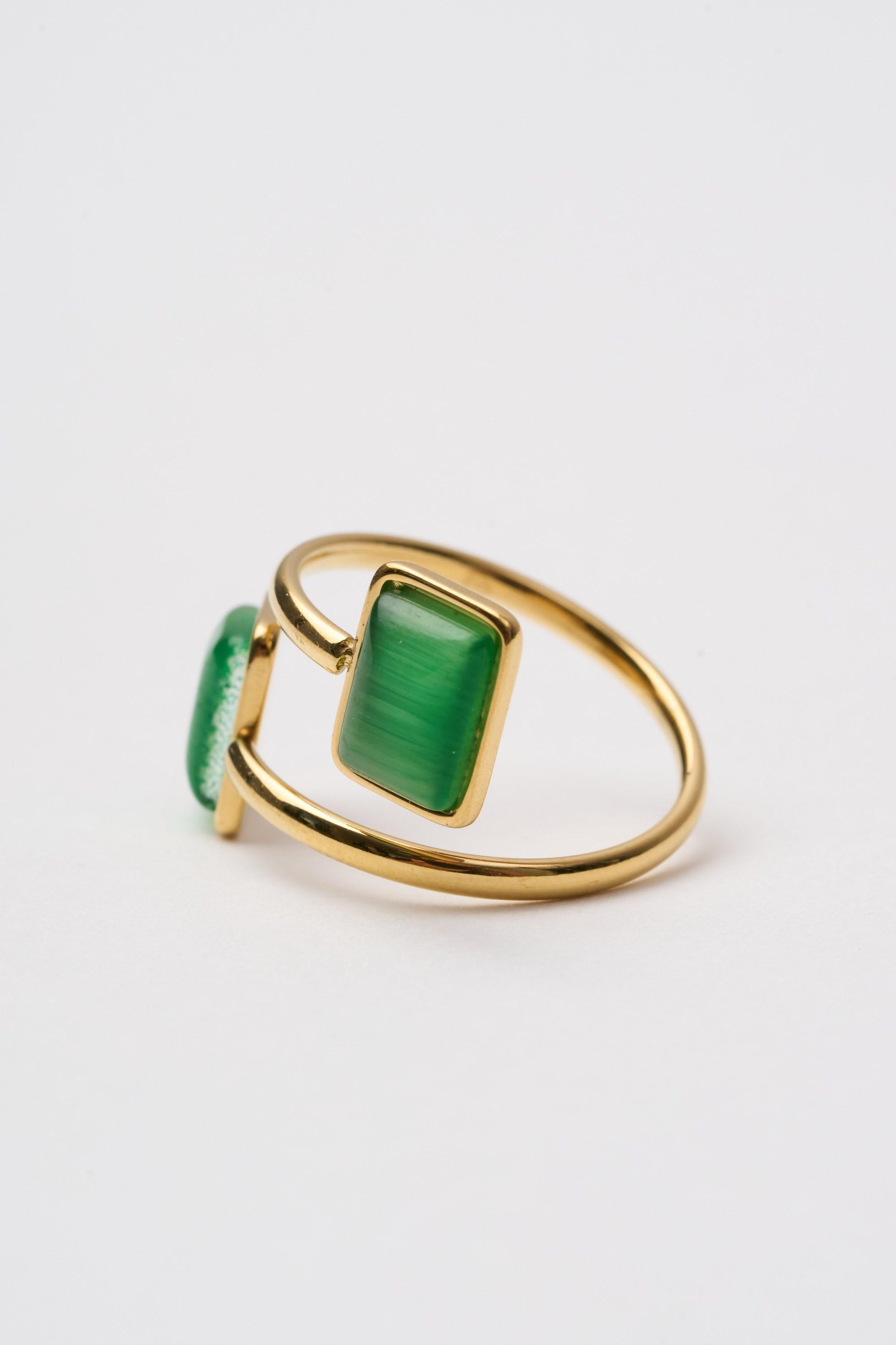 tre emme Anelli Oro Spirale Verde Quadrato Donna