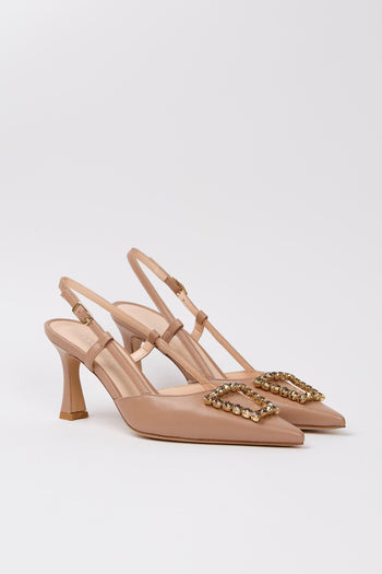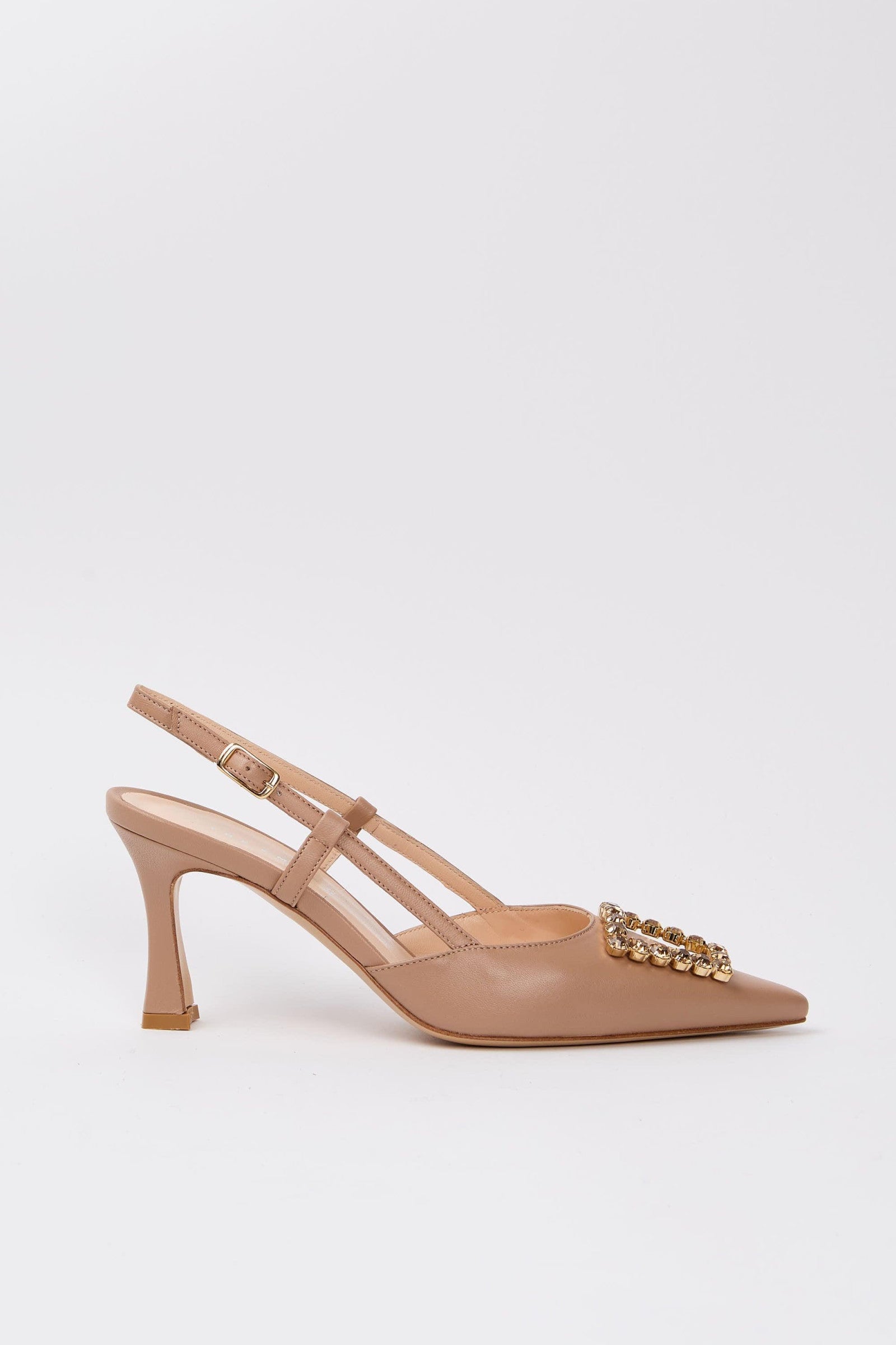 Il design sofisticato presenta una punta slanciata e una chiusura a cinturino che avvolge il tallone con grazia, garantendo una vestibilità personalizzabile e sicura. La palette di colori naturali offre una versatile facilità di abbinamento con qualsiasi outfit, dalle mise giornaliere ai look serali più ricercati.