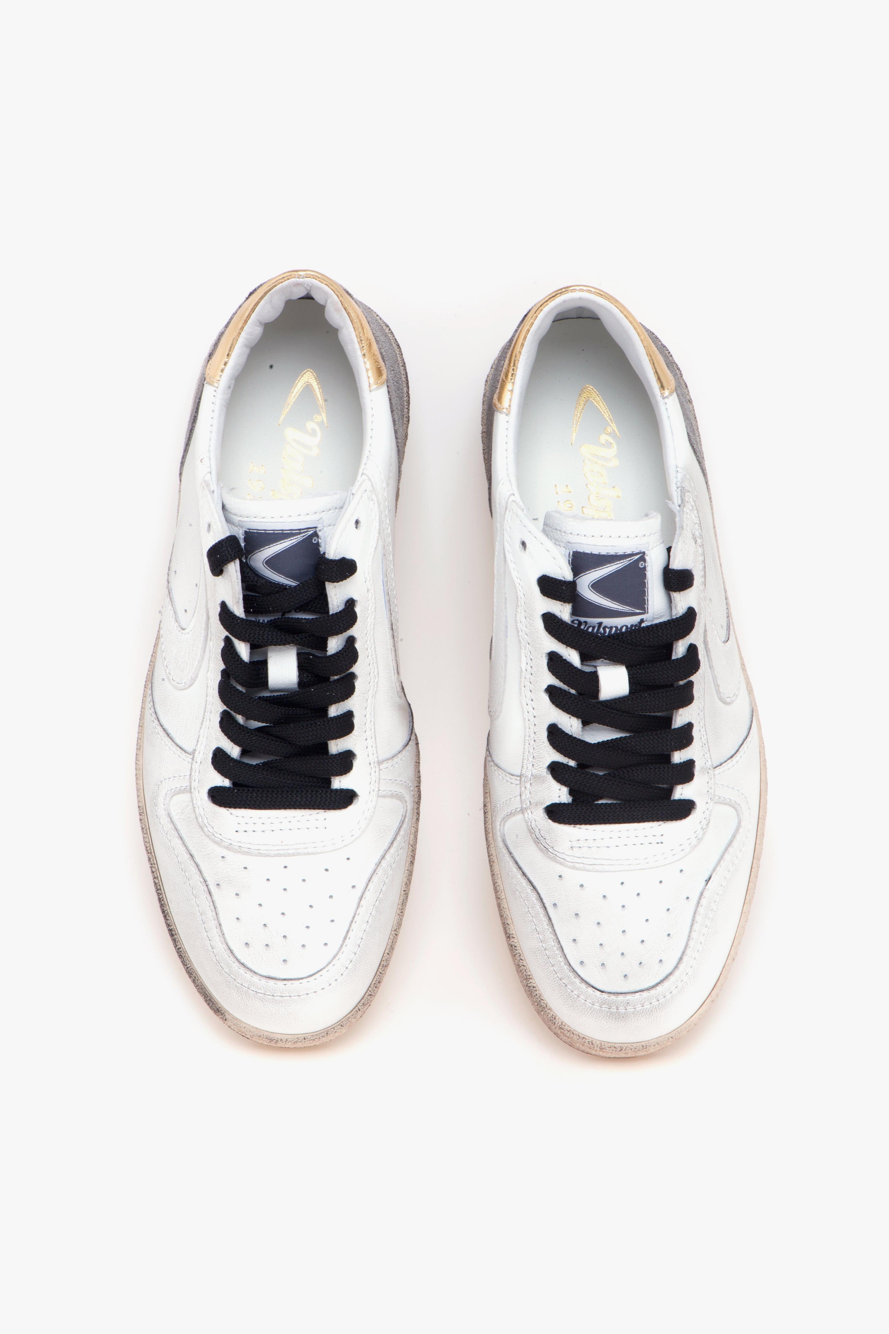 Valsport Davis rappresenta al meglio l’equilibrio tra heritage e modernità, una sneaker dal fascino retrò reinterpretata in chiave contemporanea. Realizzata interamente in Italia, questa calzatura combina la tradizione artigianale con un design ricercato, perfetto per chi ama distinguersi con classe e versatilità.La tomaia in pelle premium è arricchita da un particolare effetto vintage applicato in modo artigianale, che dona alla scarpa un look vissuto e autentico. L’iconico boomerang Valsport tono su tono esalta le linee essenziali della sneaker, mentre il talloncino in pelle laminata dorata e l'inserto sul tallone in camoscio grigio aggiungono dettagli sofisticati e di carattere.A completare il design, la suola in gomma color ecru, che riprende l’effetto vintage della tomaia per un equilibrio perfetto tra stile e artigianalità. Grazie alla sua versatilità, la Valsport Davis si abbina con facilità sia a un look sportivo con jeans e felpa, sia a un outfit più ricercato con pantaloni ampi e blazer per un’eleganza disinvolta.# Tomaia in pelle e camoscio, con effetto vintage applicato artigianalmente.# Iconico boomerang tono su tono, simbolo di stile senza tempo.# Talloncino in pelle laminata dorata ed inserto in camoscio grigio, per un tocco sofisticato.# Suola in gomma color ecru, dal look retrò e artigianale.# Fodera in pelle e tessuto, per un comfort ottimale.# Sottopiede estraibile in pelle.# 100% Made in Italy, lavorazione artigianale e materiali pregiati.