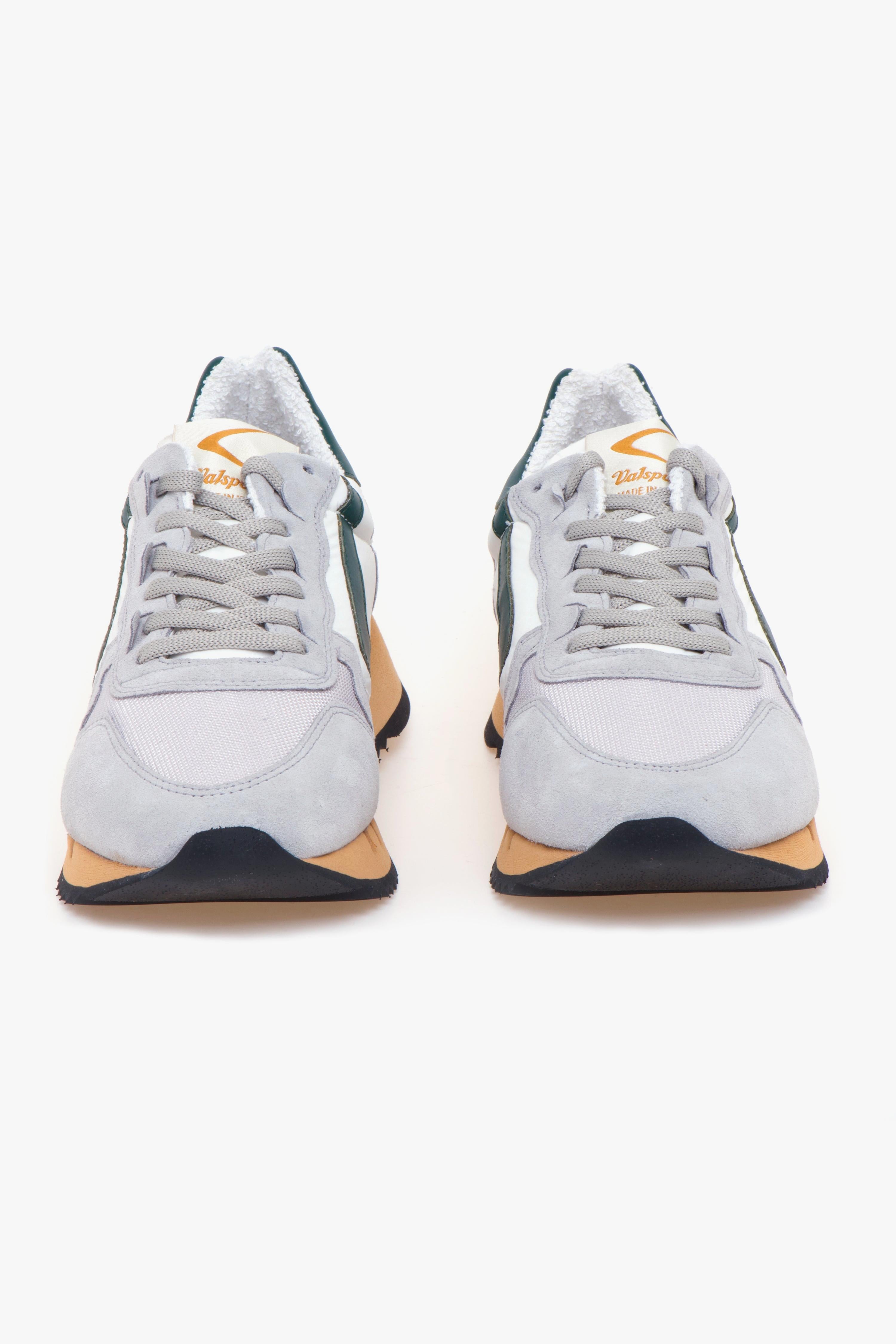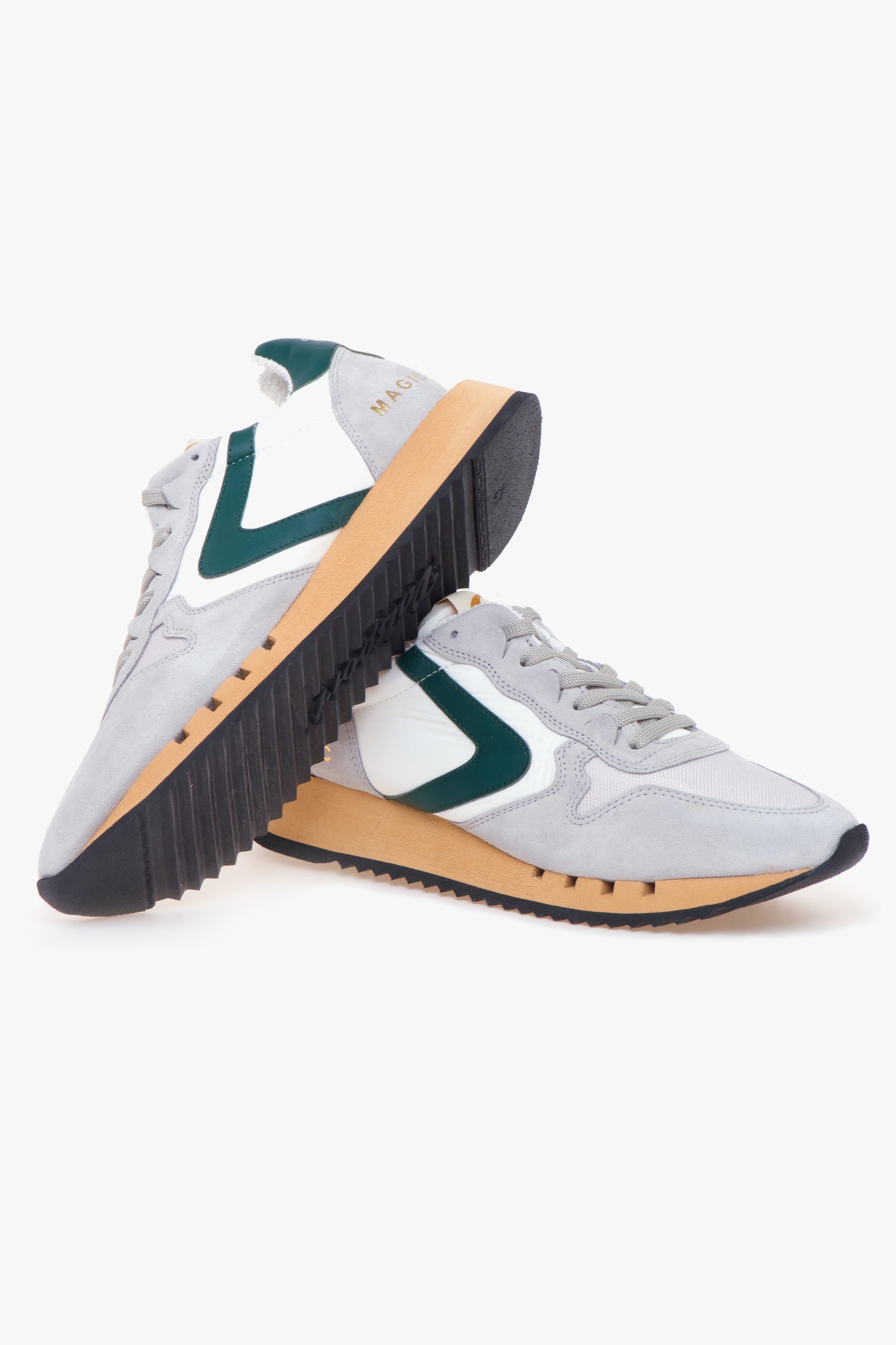 Valsport Magic è la sneaker perfetta per chi è sempre in movimento e cerca una calzatura che unisca comfort, leggerezza e un’estetica ricercata. Dal design moderno e accattivante, questo modello è ideale per il tempo libero, ma si adatta perfettamente anche a un look casual da ufficio, garantendo sempre uno stile impeccabile.Realizzata interamente in Italia, la Valsport Magic è frutto della tradizione artigianale del brand, che dal 1920 produce calzature di altissima qualità. La tomaia combina camoscio e tessuto tecnico, offrendo un mix perfetto di morbidezza, resistenza e traspirabilità. A caratterizzarla, l’iconico boomerang in pelle verde sul lato e il talloncino coordinato con logo Valsport stampato, dettagli che esaltano il design con un tocco distintivo.La suola in gomma extra light color camel, ispirata alle calzature da running, assicura massima leggerezza, flessibilità e un’ammortizzazione ottimale, rendendola ideale per un utilizzo prolungato durante tutta la giornata. # Tomaia in camoscio e tessuto tecnico, per un mix di eleganza e resistenza.# Iconico boomerang in pelle verde, simbolo di autenticità e heritage Valsport.# Talloncino in pelle verde con logo stampato, per un dettaglio distintivo.# Suola in gomma extra light color sabbia, ispirata al mondo running per un comfort senza pari.# Fodera in pelle e tessuto, per una calzata traspirante e avvolgente.# Sottopiede estraibile in pelle.# 100% Made in Italy, realizzata con materiali pregiati e cura artigianale.