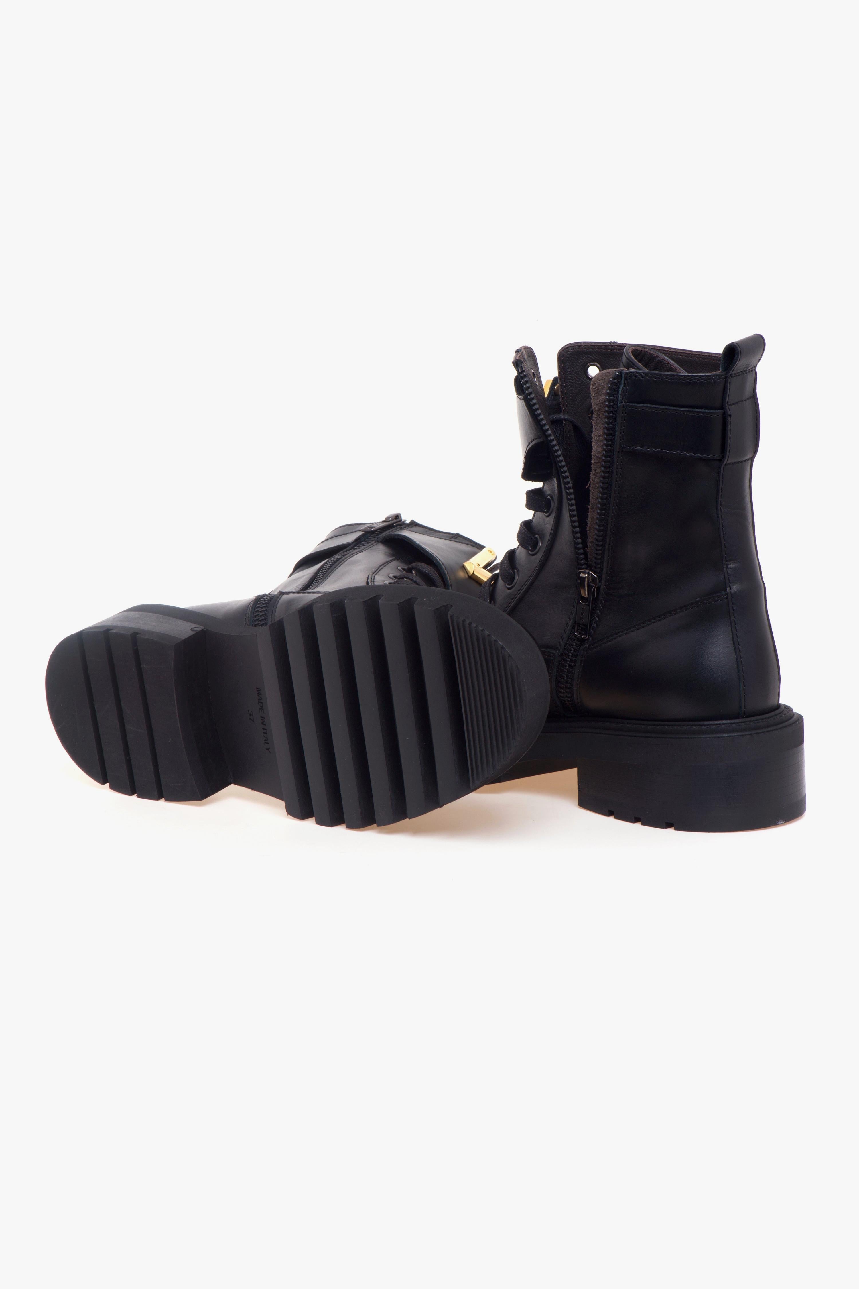 L’anfibio Via Roma 15, rivisitato in chiave elegante e raffinata, è un must-have che non può mancare nel guardaroba. La tomaia in pelle nera è valorizzata da accessori dorati e da una patta frontale su cui spicca l’iconica “V” in metallo, dettaglio prezioso che illumina il design senza rinunciare alla pulizia delle linee. Versatile e facilissimo da abbinare, accompagna con stile la stagione fredda, dal daily look ai completi più ricercati.La suola leggera con battistrada dentellato assicura flessibilità, comfort e ottimo grip su fondi urbani, anche nelle giornate di pioggia. Interno e sottopiede in pelle garantiscono traspirabilità e una calzata morbida. Un modello Made in Italy che unisce qualità manifatturiera e attitudine contemporanea.Caratteristiche principali:# Tomaia 100% pelle nera.# Accessori dorati e patta frontale con logo “V” in metallo.# Fodera e sottopiede in pelle.# Suola in gomma leggera con battistrada dentellato per grip e comfort.# Made in Italy.