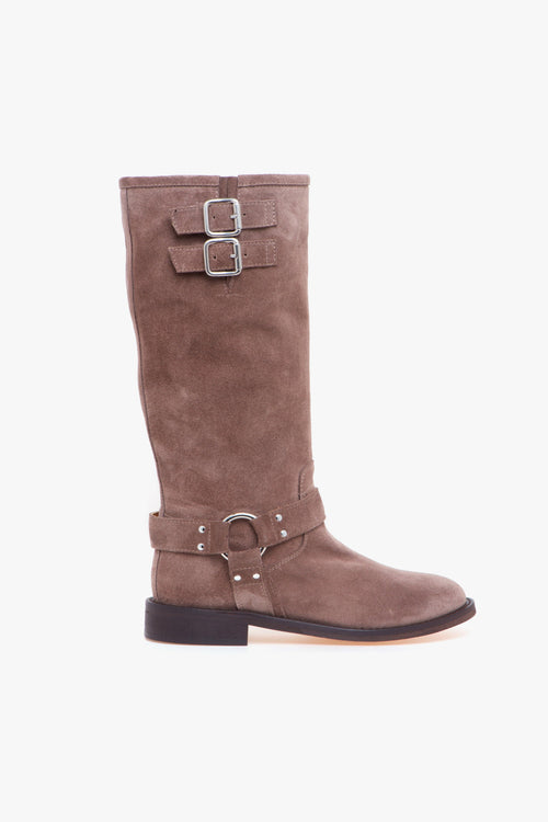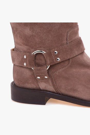 Grintoso ma sofisticato, il biker Via Roma 15 è lo stivaletto perfetto per chi cerca un equilibrio tra stile e carattere. Realizzato in morbido suede tortora, è impreziosito da cinturini decorativi e fibbie color nickel, che aggiungono un tocco deciso e raffinato al design.Versatile e facile da abbinare, si adatta perfettamente a look casual-chic, da indossare con un abito corto, un chemisier o un denim per un outfit dal fascino effortless. La suola in cuoio assicura qualità e durata, mentre la fodera e il sottopiede in pelle garantiscono massimo comfort ad ogni passo.Dettagli prodotto:# Tomaia in camoscio con cinturini e fibbie sullo spacco.# Fodera e sottopiede in pelle per un comfort ottimale.# Suola in cuoio per una calzata resistente e raffinata.# Made in Italy.Un must-have della stagione, perfetto per chi ama unire grinta ed eleganza in un'unica calzatura.