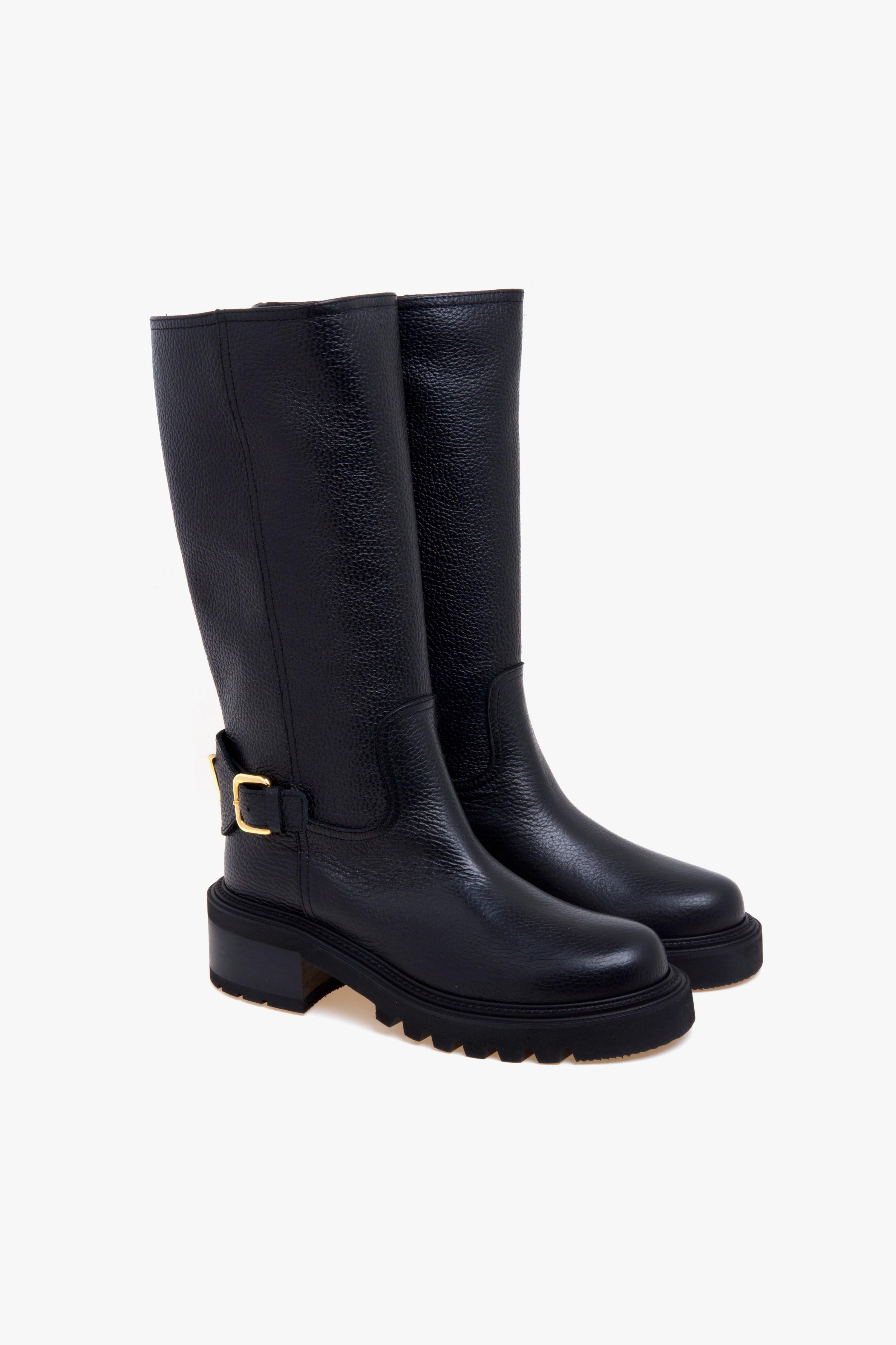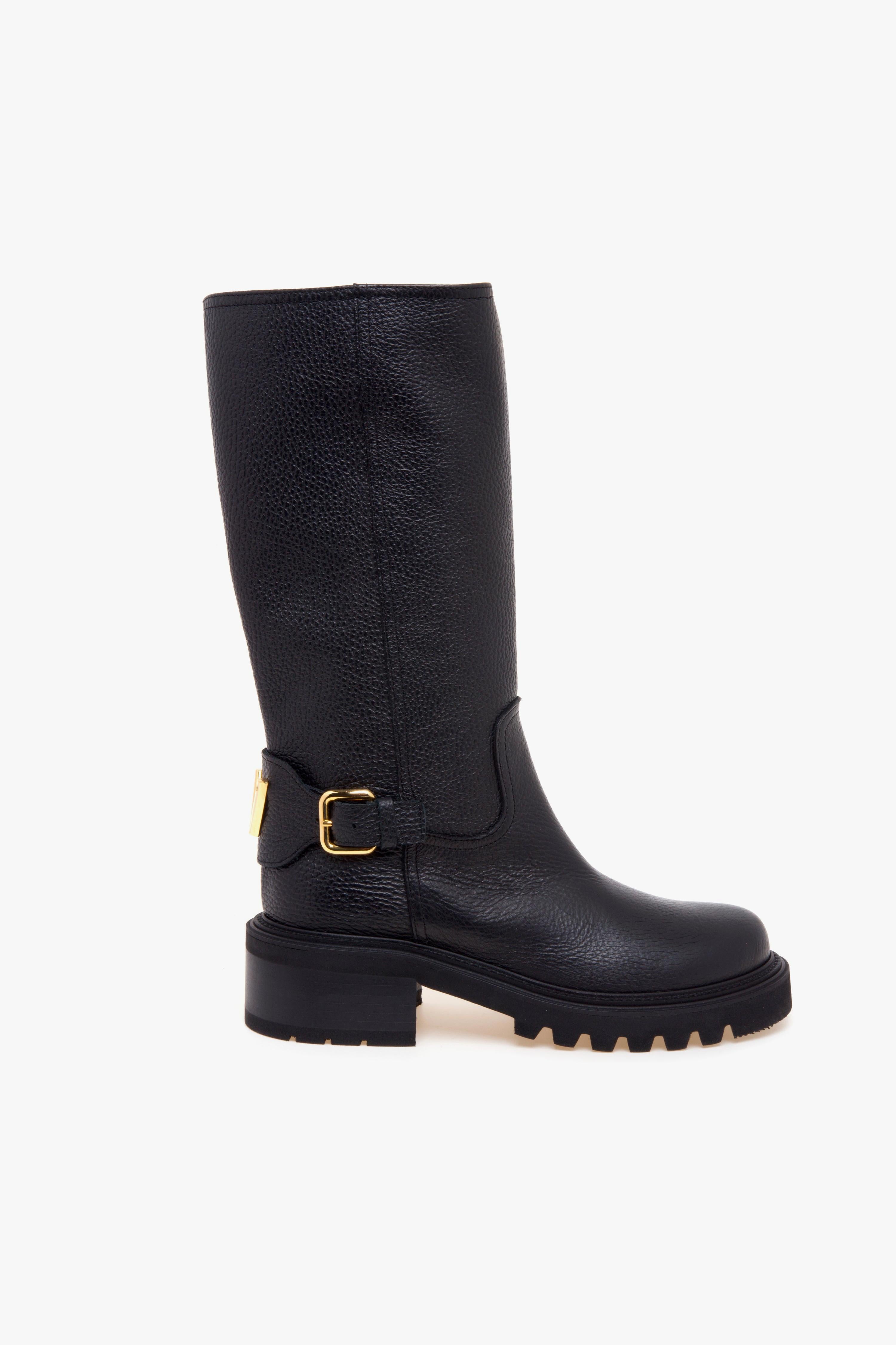 Il biker Via Roma 15 in pelle martellata unisce carattere grintoso e cura artigianale. Il gambale a 3/4 avvolge la caviglia con una calzata stabile, mentre l’inserto in pelle sul retro ospita l’iconica “V” in metallo dorato: un dettaglio prezioso che illumina il design senza rinunciare all’attitudine rock del modello.Fodera e sottopiede sono interamente in pelle per maggiore traspirabilità e comfort, anche nelle giornate più intense. La suola in gomma extra-light con tacco da 50 mm garantisce leggerezza e ottimo grip sull’asfalto cittadino. Un biker Made in Italy che coniuga materiali selezionati e stile contemporaneo, perfetto con denim, mini e abiti fluidi.Caratteristiche principali:# Tomaia 100% pelle martellata.# Gambale a 3/4 per sostegno e versatilità.# Inserto in pelle con dettaglio “V” dorata.# Fodera e sottopiede in pelle.# Suola in gomma extra-light con tacco 50 mm# Made in Italy.