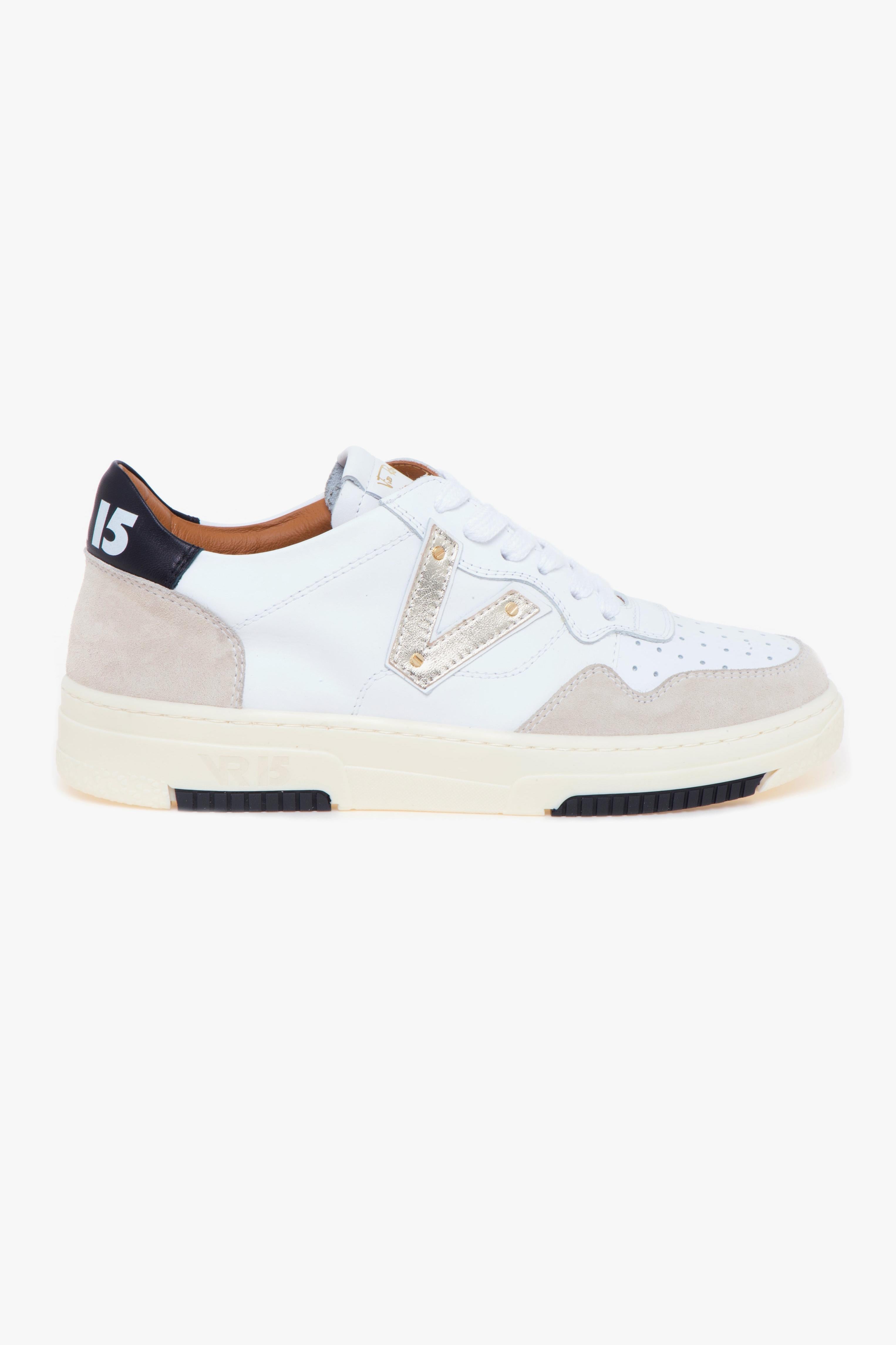 Sneaker Via Roma 15 ispirata alle scarpe da basket rétro e reinterpretata in chiave contemporanea per un perfetto equilibrio tra stile e versatilità. Il design si distingue per l’iconica "V" laterale, dettaglio che aggiunge carattere e riconoscibilità al modello. Realizzata interamente in pelle di alta qualità, è impreziosita da inserti in suede sabbia a contrasto, che donano un tocco di eleganza e profondità alle finiture. Il talloncino in pelle con logo "VR15" enfatizza l’identità del brand, mentre la suola in gomma garantisce comfort e resistenza. Un modello Made in Italy, ideale per completare look casual e streetwear, perfetto in abbinamento a jeans, pantaloni cargo o completi sporty-chic per un outfit dal fascino urbano e ricercato. # Tomaia in pelle e camoscio. # Fodera in pelle. # Sottopiede estraibile in pelle. # Suola in gomma. # Made in Italy.