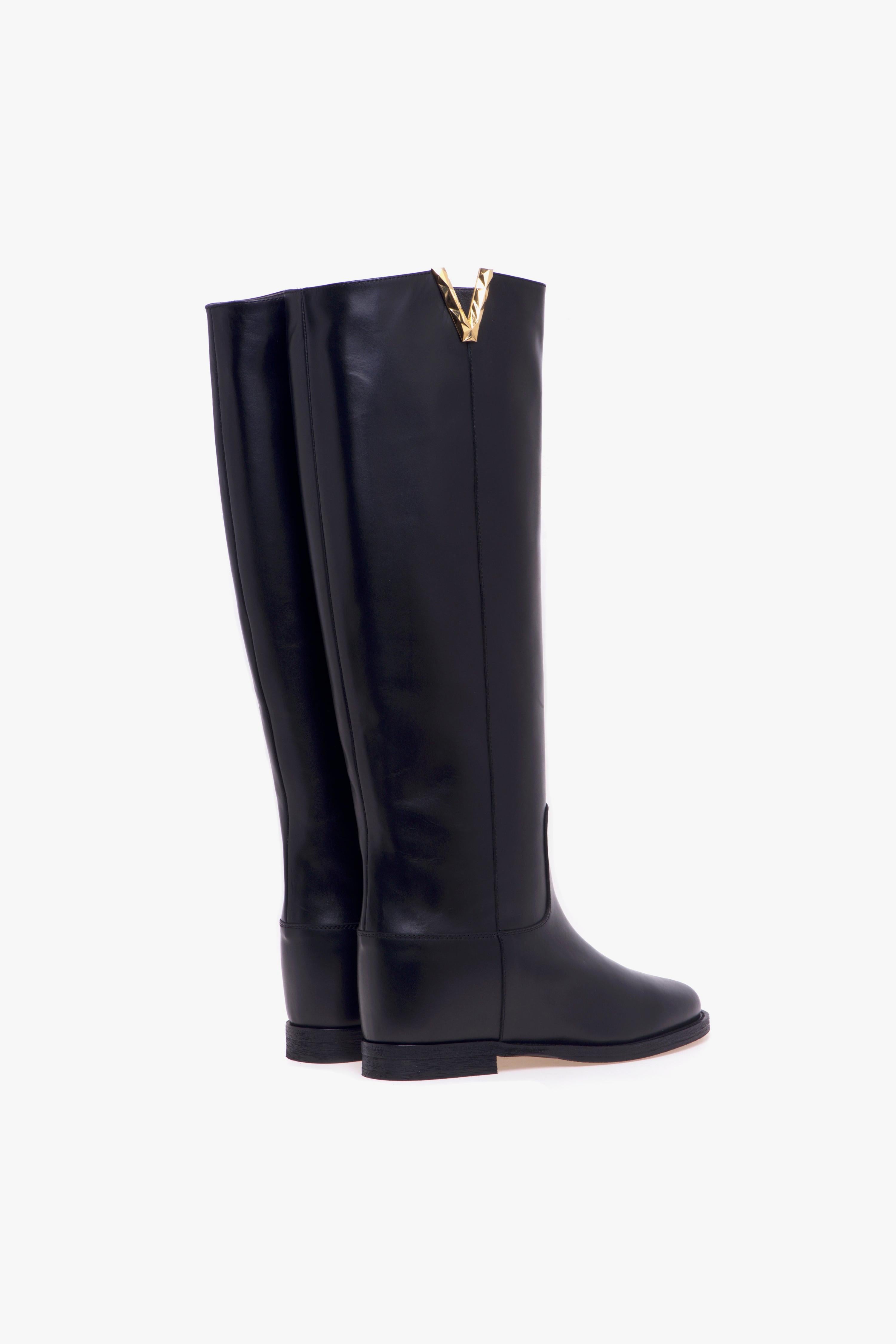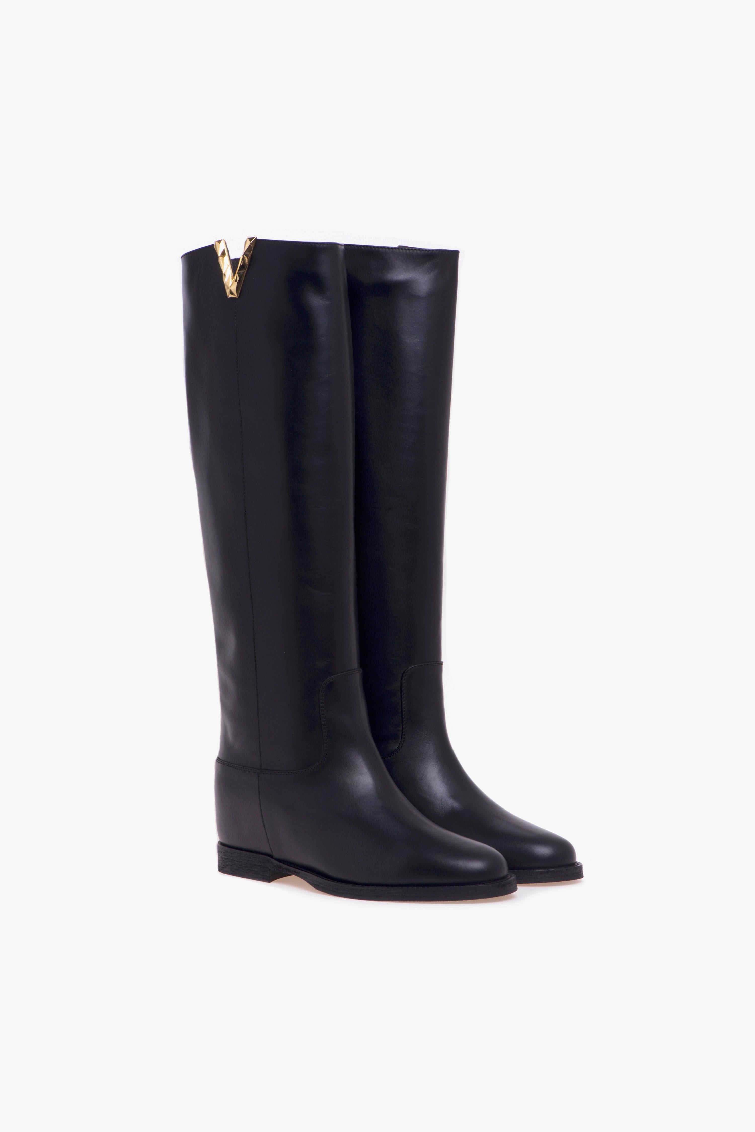 Un mix perfetto di stile e comfort, lo stivale con zeppa interna Via Roma 15 è la calzatura ideale per chi cerca slancio e versatilità senza rinunciare alla praticità. Realizzato in pelle di alta qualità, è impreziosito dall’iconica "V" in metallo dorato dal design sfaccettato, che aggiunge un tocco distintivo ed elegante.Grazie alla zeppa interna di 4 cm, offre una discreta elevazione e una calzata confortevole per tutta la giornata.Perfetto per ogni occasione, si abbina con facilità a look sia da giorno – blazer o gonne midi – che da sera, con un abito corto o un completo più sofisticato.Un modello must-have, essenziale in ogni guardaroba per la sua capacità di coniugare eleganza e praticità in un’unica calzatura.Dettagli prodotto:# Tomaia in pelle con dettaglio "V" in metallo dorato.# Fodera e sottopiede in pelle per massimo comfort.# Zeppa interna 4 cm per un effetto slanciato e naturale.# Suola in cuoio per maggiore resistenza e qualità.# Made in Italy.Un alleato perfetto per affrontare la giornata con stile, dalla mattina alla sera.