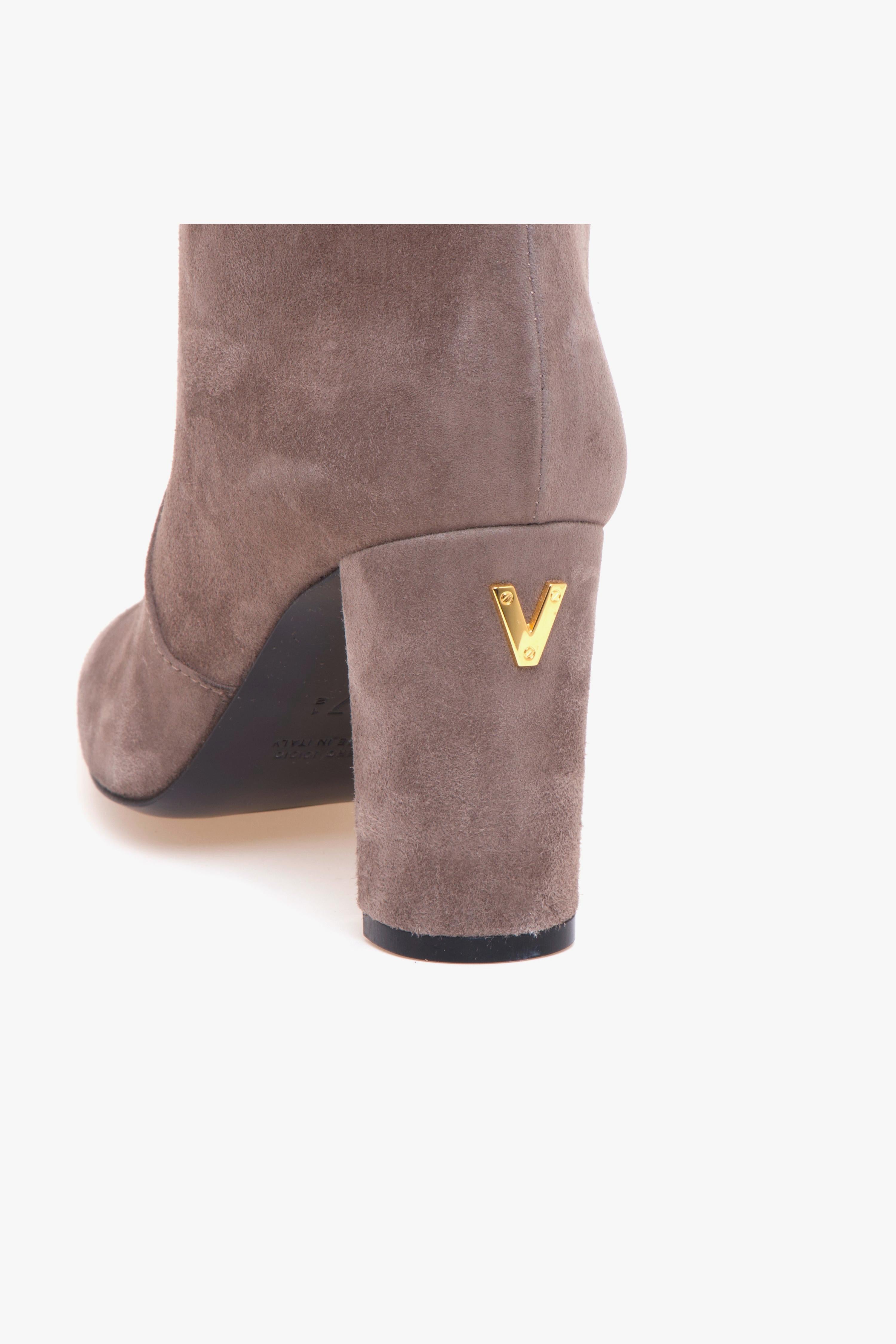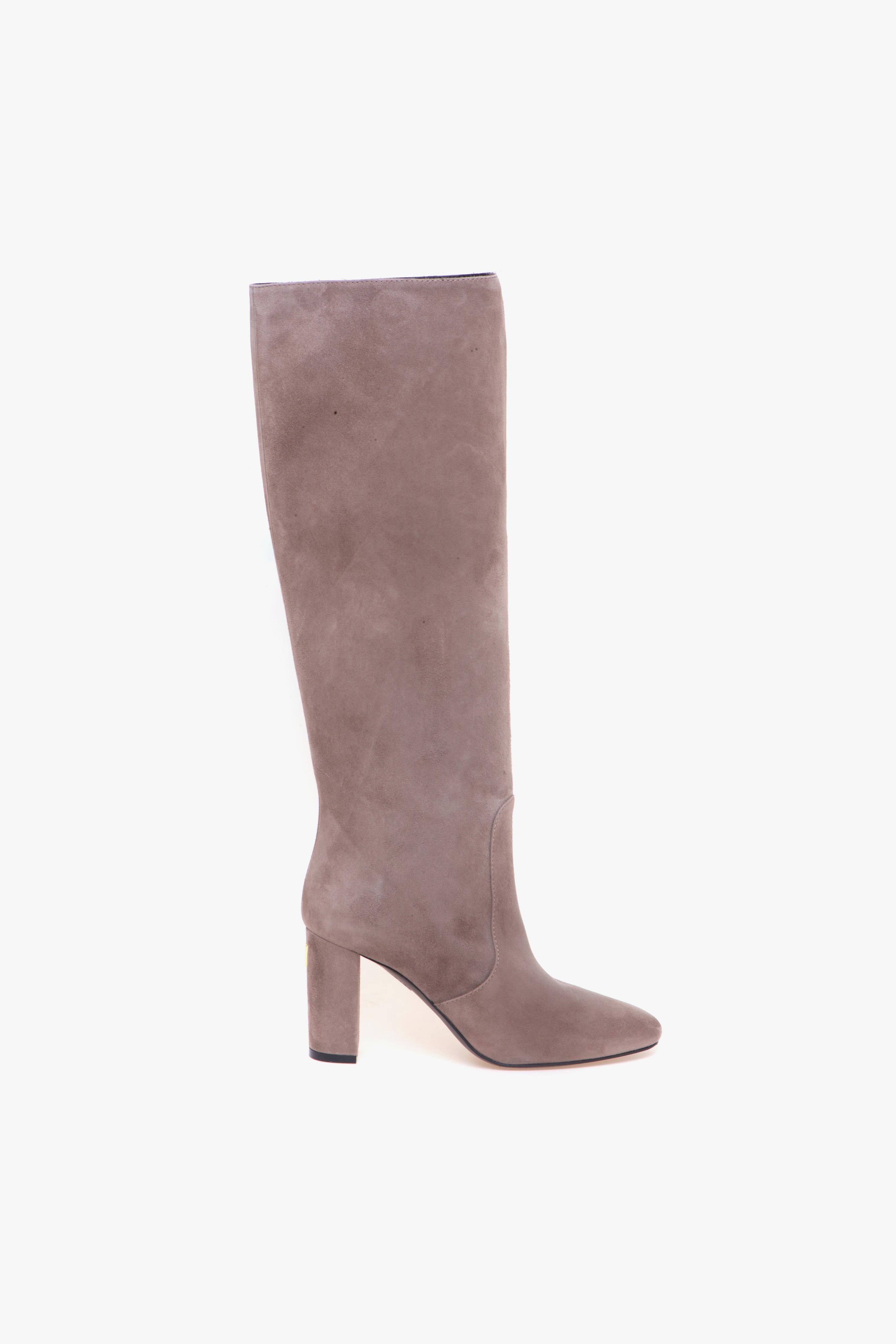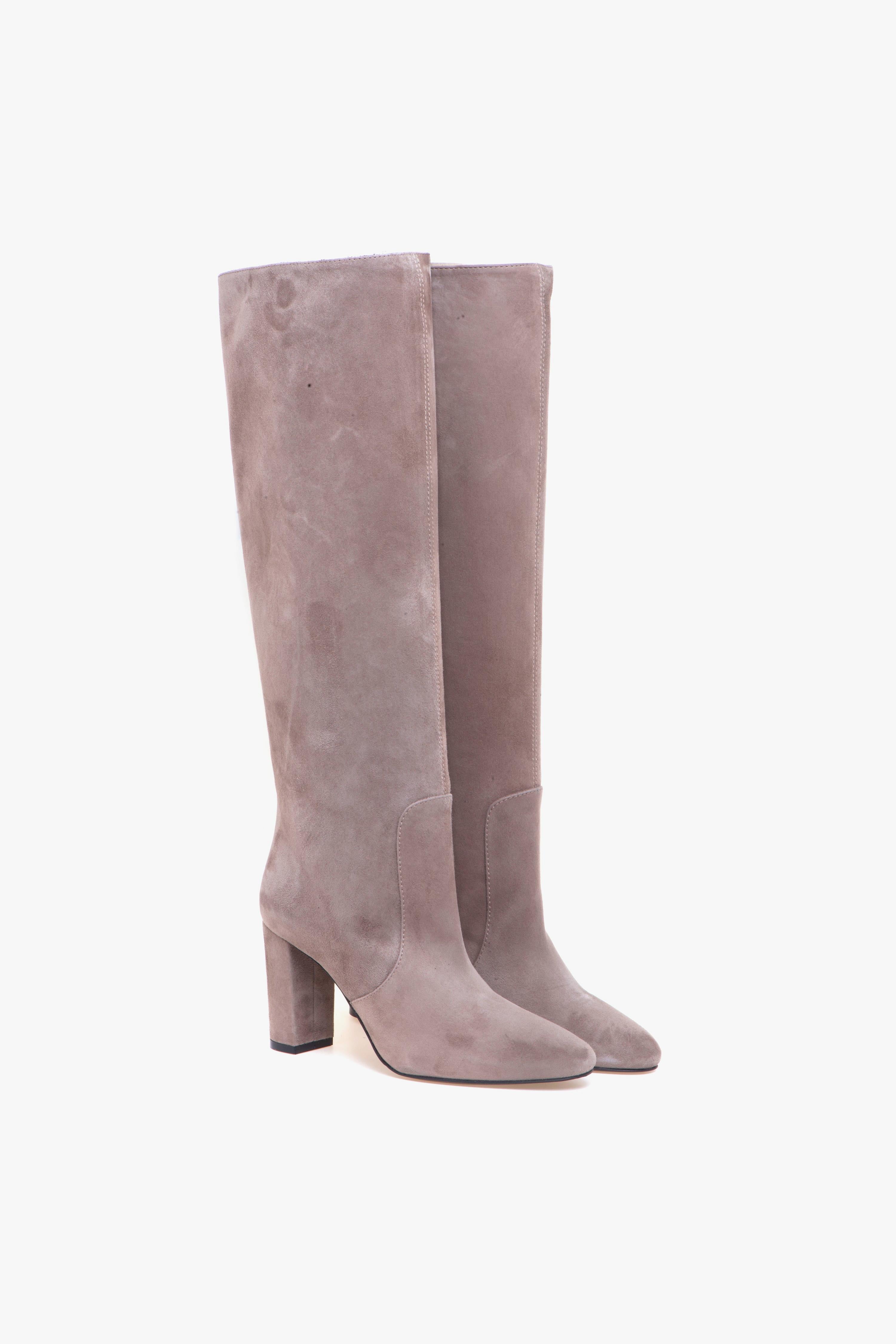 Lo stivale a tubo Via Roma 15 in morbido suede color visone unisce linee pulite e carattere deciso. La punta arrotondata ammorbidisce la silhouette, mentre il tacco grosso da 80 mm garantisce slancio e stabilità. Sul retro del tacco spicca il mini logo “V” in metallo dorato: un dettaglio luminoso che firma il design con discrezione. Il gambale a tubo — senza zip — avvolge la gamba con un look essenziale e contemporaneo. Interno e fodera in pelle assicurano comfort e traspirabilità, mentre la suola in cuoio con inserto in gomma offre aderenza e durata nell’uso quotidiano. Un modello Made in Italy che coniuga qualità artigianale e femminilità moderna, perfetto dal giorno alla sera. Caratteristiche principali: # Tomaia in camoscio. # Gambale a tubo (senza zip). # Tacco grosso 80 mm con mini logo “V” dorato sul retro. # Punta arrotondata. # Fodera in pelle. # Suola in cuoio con inserto in gomma. # Made in Italy.