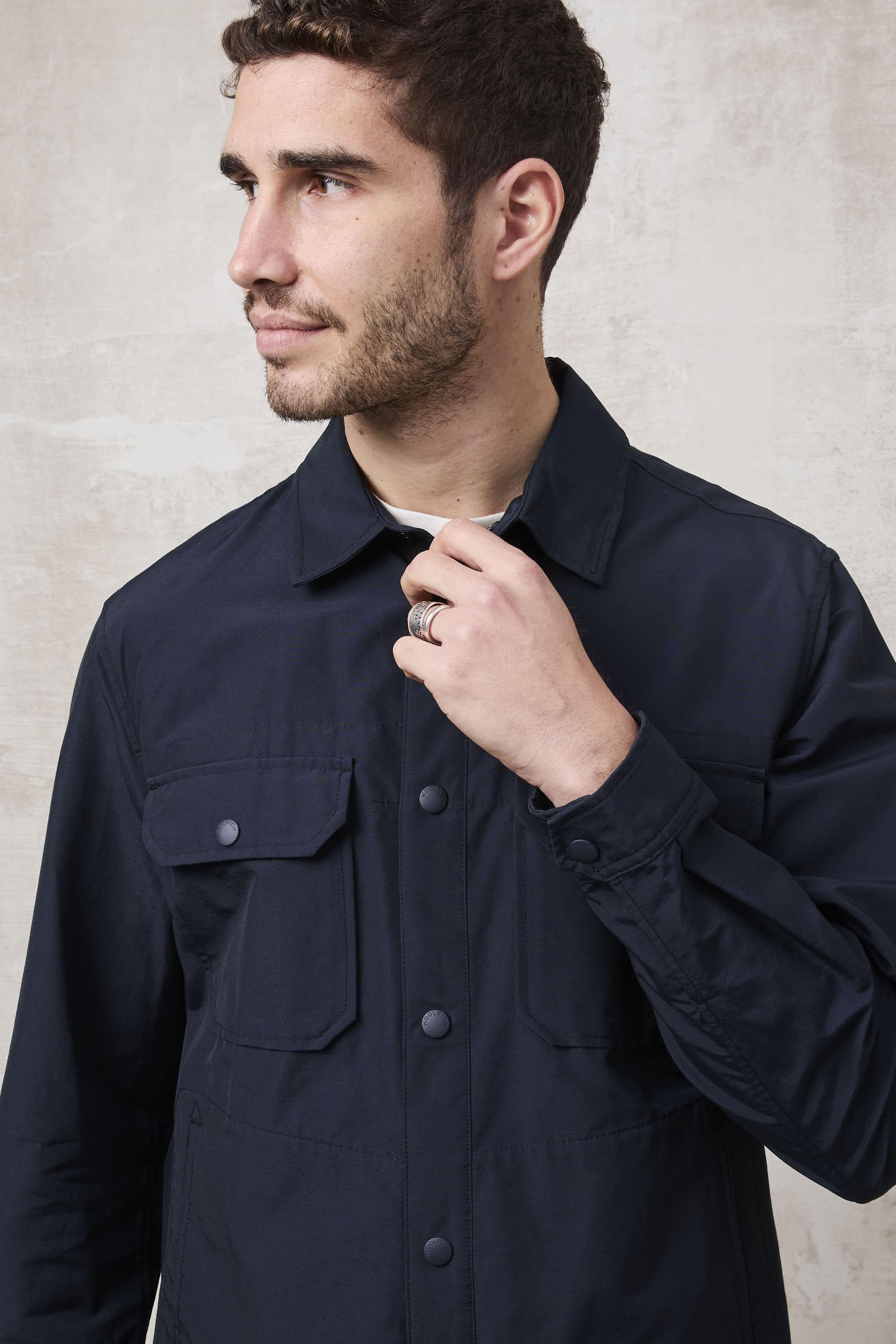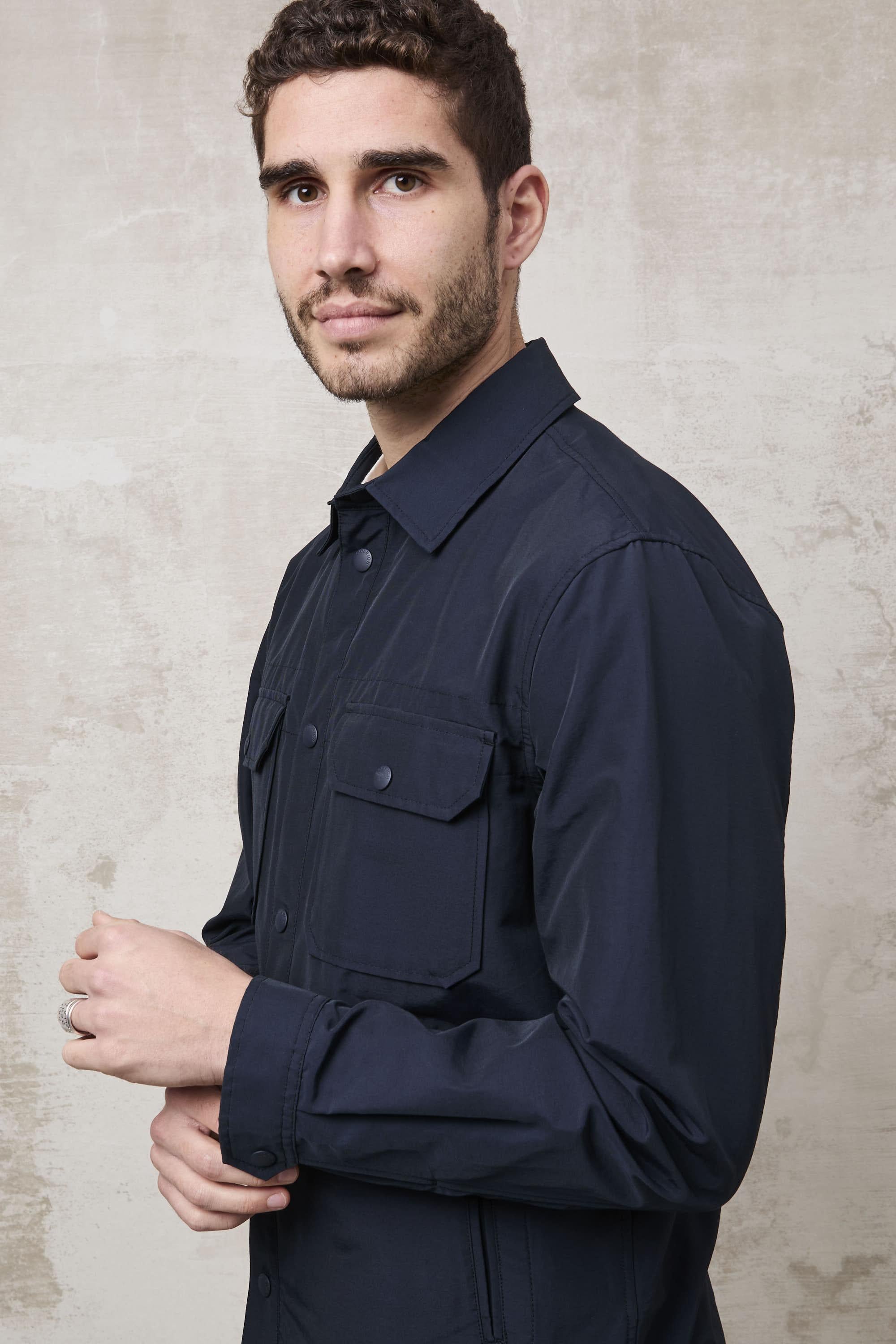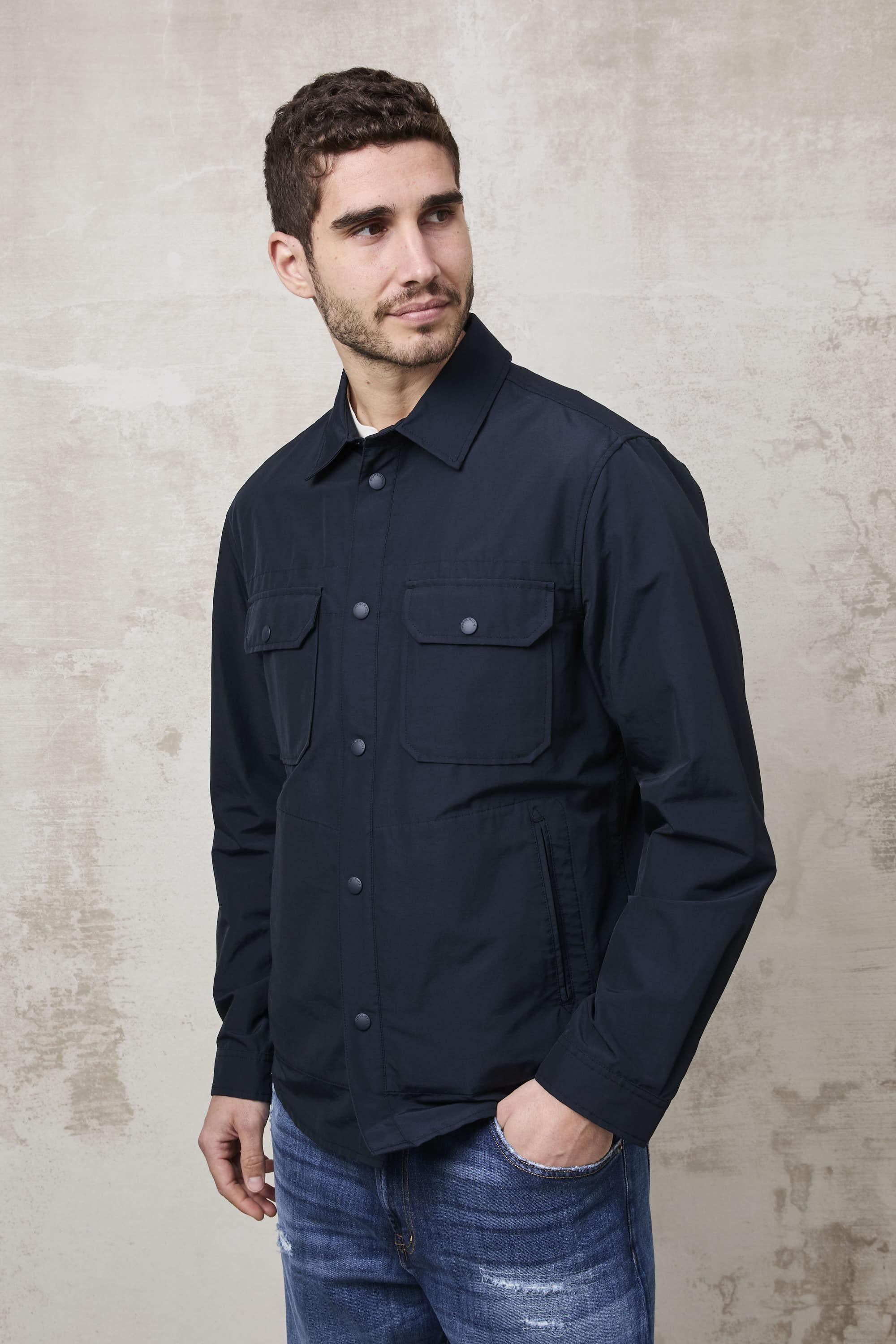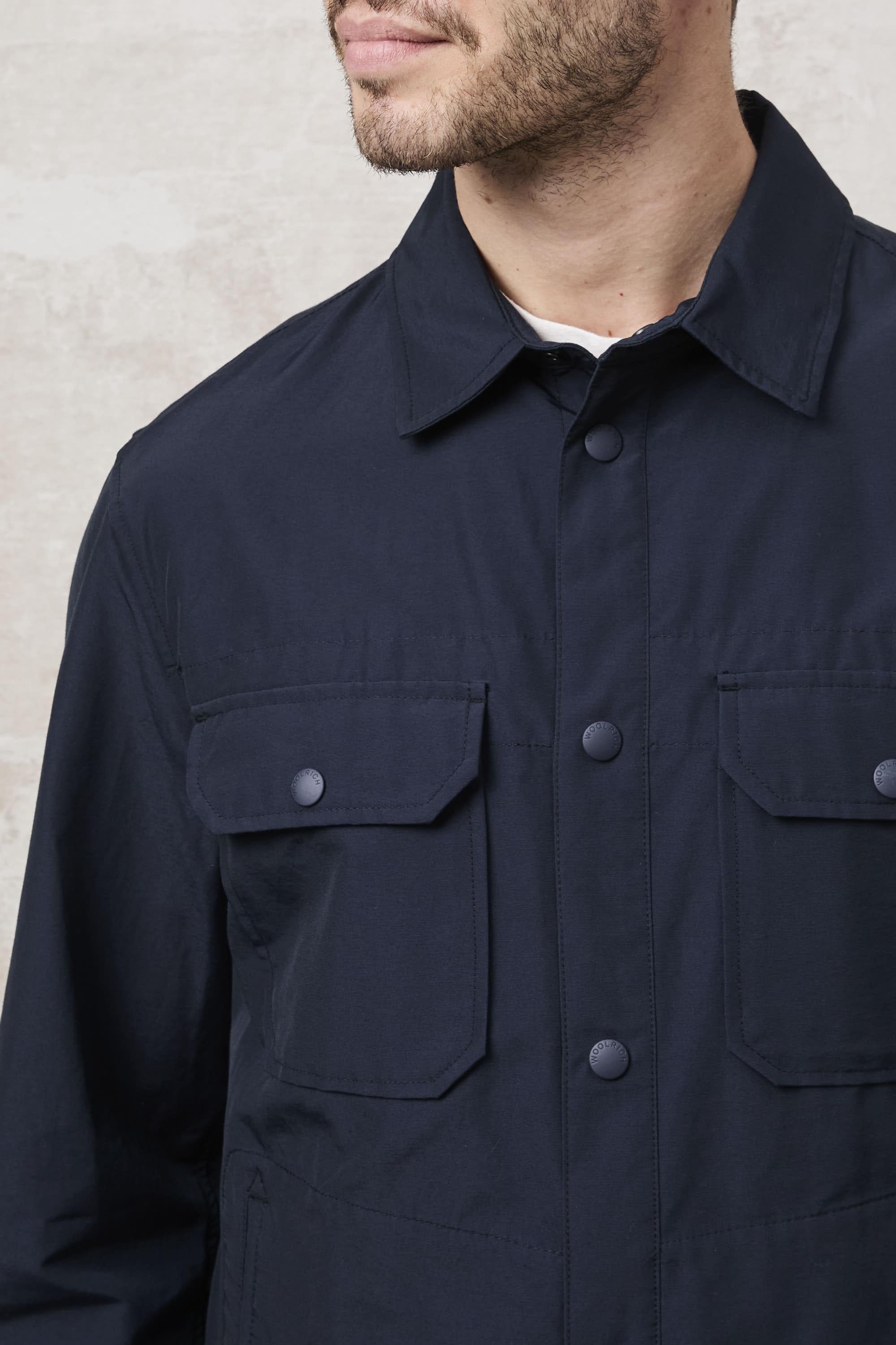Dettagli: Realizzata in Light Ramar; Tessuto idrorepellente e resistente al vento; Fodera in puro cotone; Colletto classico con linguetta logata e bottone; Chiusura con bottoni a pressione; Tasche applicate sul petto con patta e bottoni a pressione; Tasche a filetto; Polsini regolabili con bottoni a pressione; Etichetta sul fondo dell'abbottonatura; Composizione: Esterno 60% Cotone, 40% Poliammide, Interno 100% Cotone