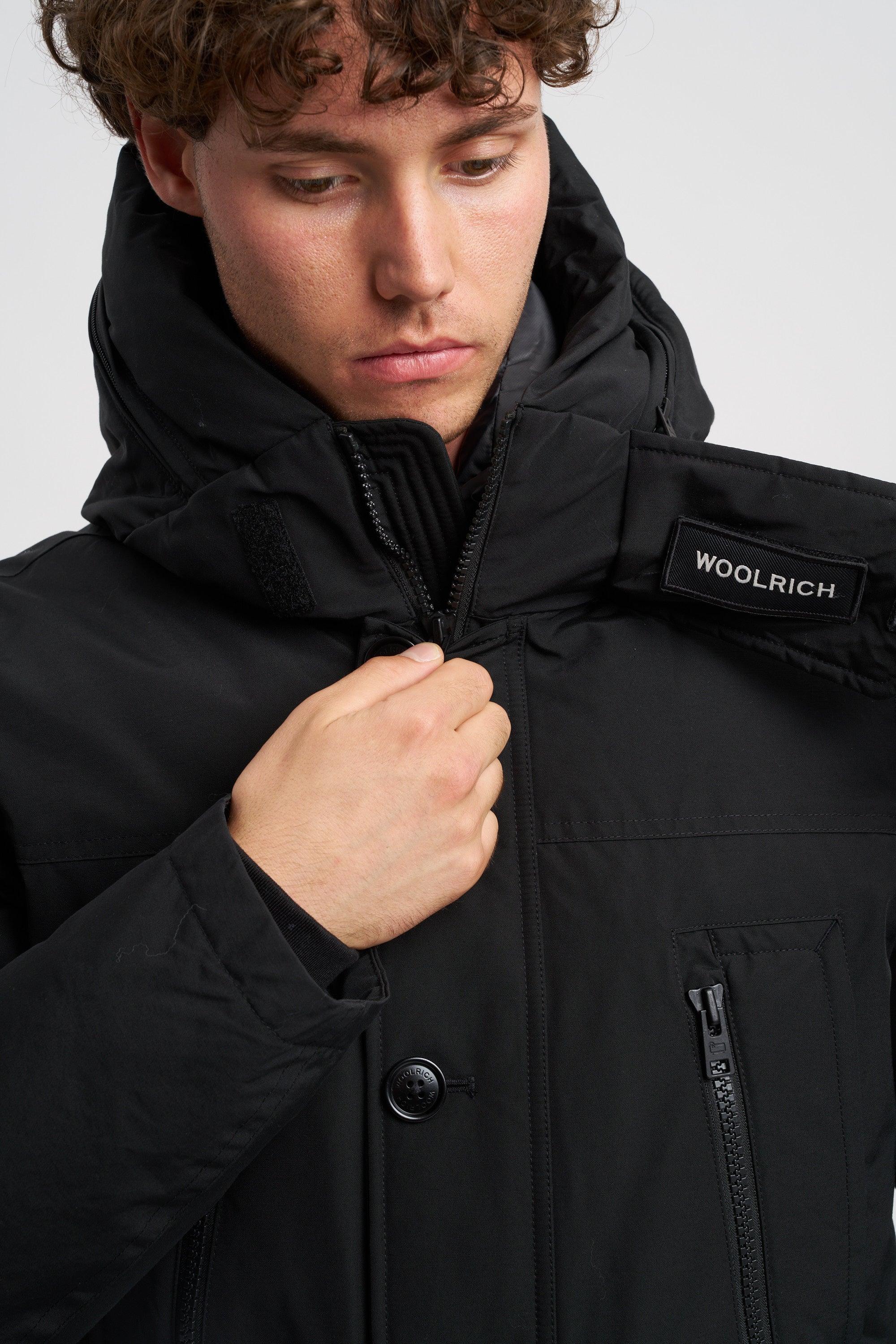 - Giacca realizzata in tessuto Ramar Cloth, resistente all’acqua e al vento- Imbottitura in piuma d’anatra 90/10, certificata RDS - Cappuccio con zip regolabile per mostrare o nascondere la scritta Woolrich- Linguetta sul colletto con velcro e logo staccabile- Chiusura con quattro bottoni e zip nascosta- Coulisse interna in vita per regolare la vestibilità- Tasche esterne: tasche scaldamani a doppio ingresso con zip, tasche con patta e bottone a pressione- Tasche interne: due tasche interne tipiche del modello- Polsini interni a costine- Scala di termicità: Freddo medio -10 °C / 0 °CColore: NeroIl modello indossa la taglia M, è alto 1.84 cm e pesa 70 kg.STAGIONE: AUTUNNO INVERNO 2025/2026COD: CFWOOU0866MRUT0001 BLKMateriale esterno: 60% Cotone - 40% PoliammideMariale Interno: 100% PoliammideImbottitura: 90% Piumino d'anatra grigia - 10% Piuma