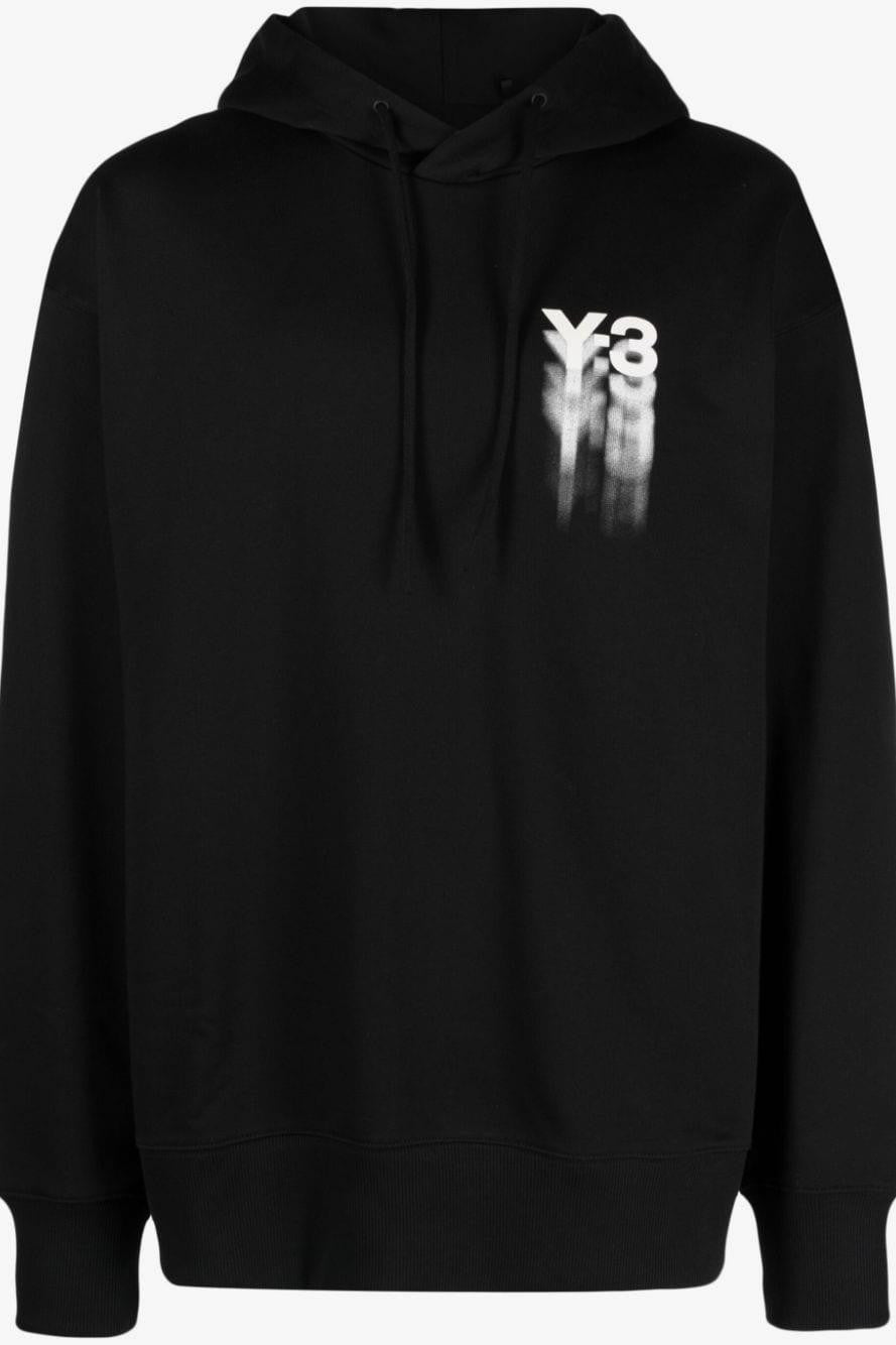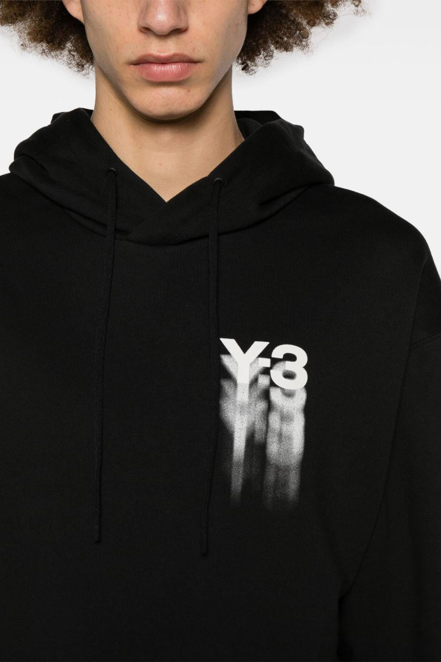 y-3 Felpa Nero Uomo Cappuccio Stampa Logo