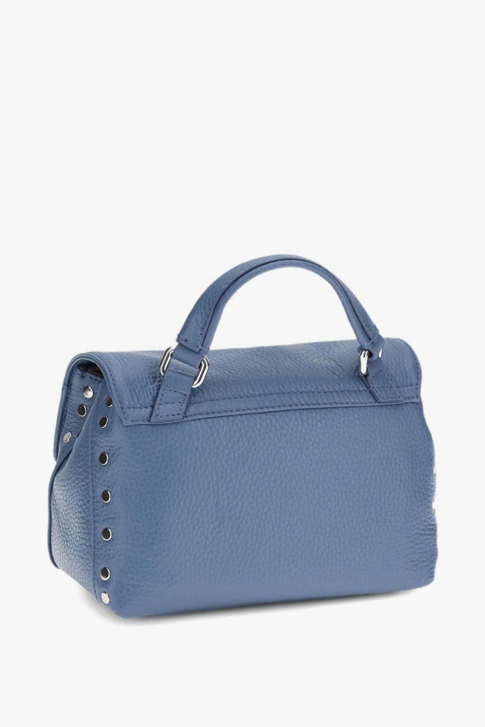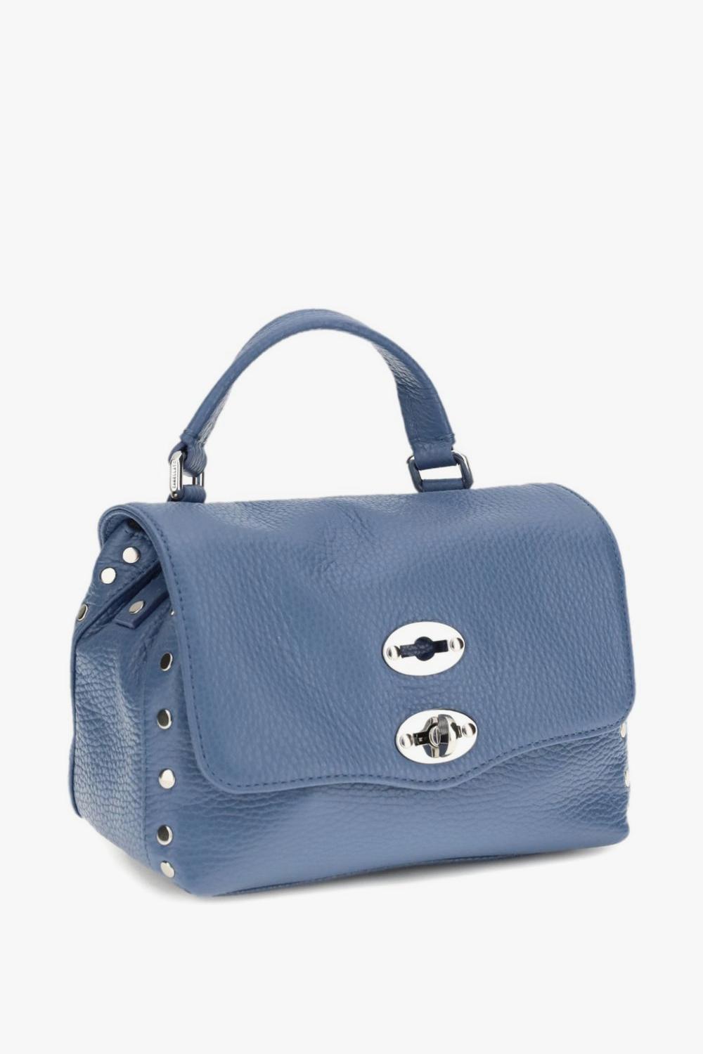 I dettagli con borchie metallizzate decorano la silhouette con un carattere moderno e discreto, mentre il manico superiore e la tracolla regolabile e rimovibile offrono diverse opzioni di indosso — a mano, a spalla o crossbody.La chiusura frontale con gancio e occhiello garantisce sicurezza e un’estetica distintiva, tipica dello stile Zanellato.