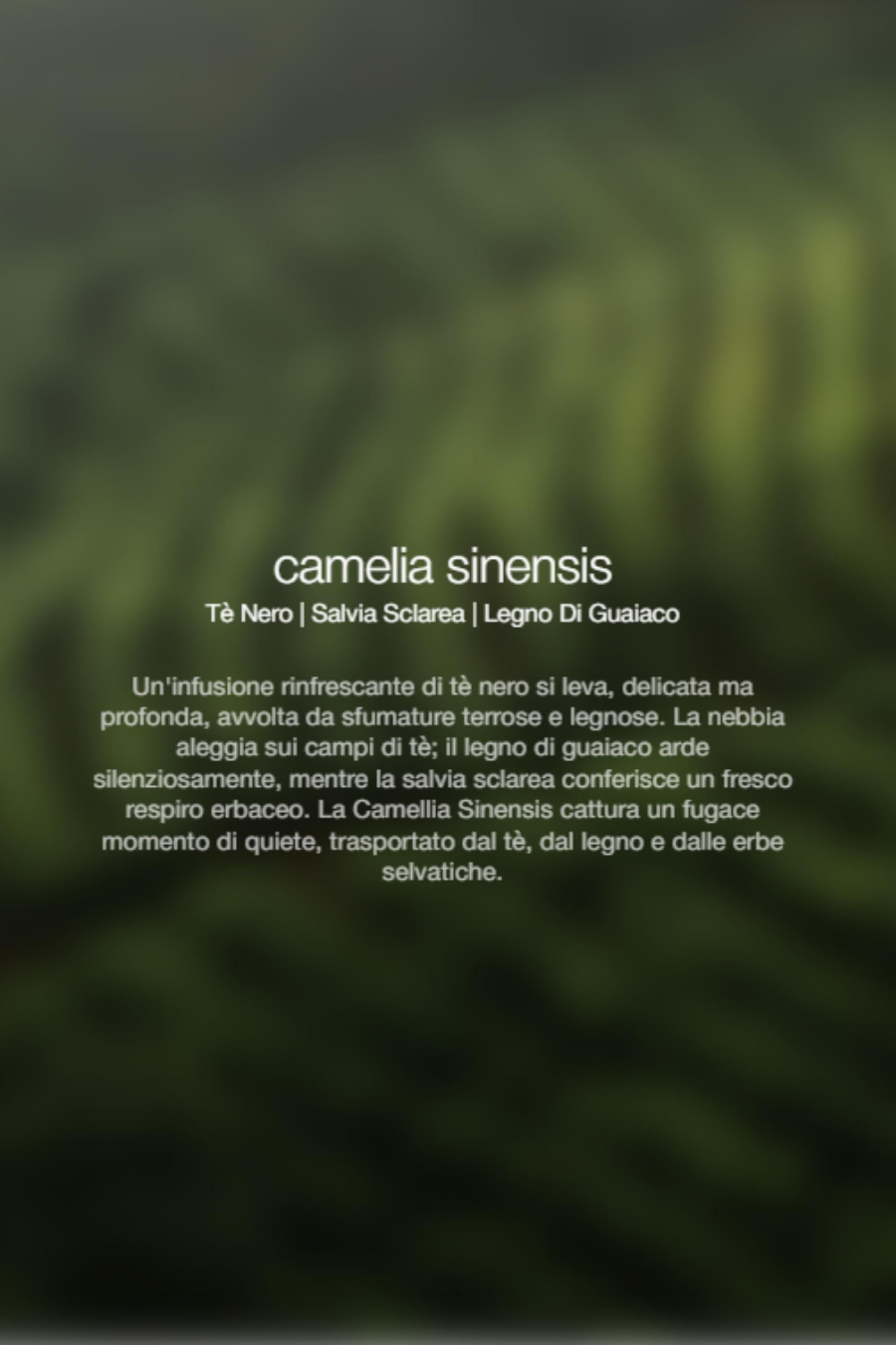 Camellia Sinensis cattura un fugace momento di quiete, trasportato dal tè, dal legno e dalle erbe selvatiche.